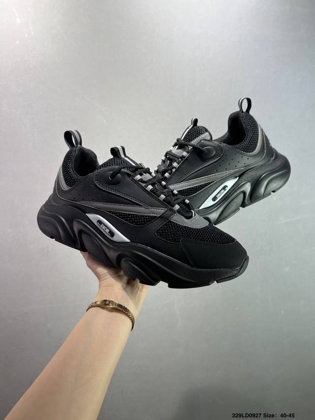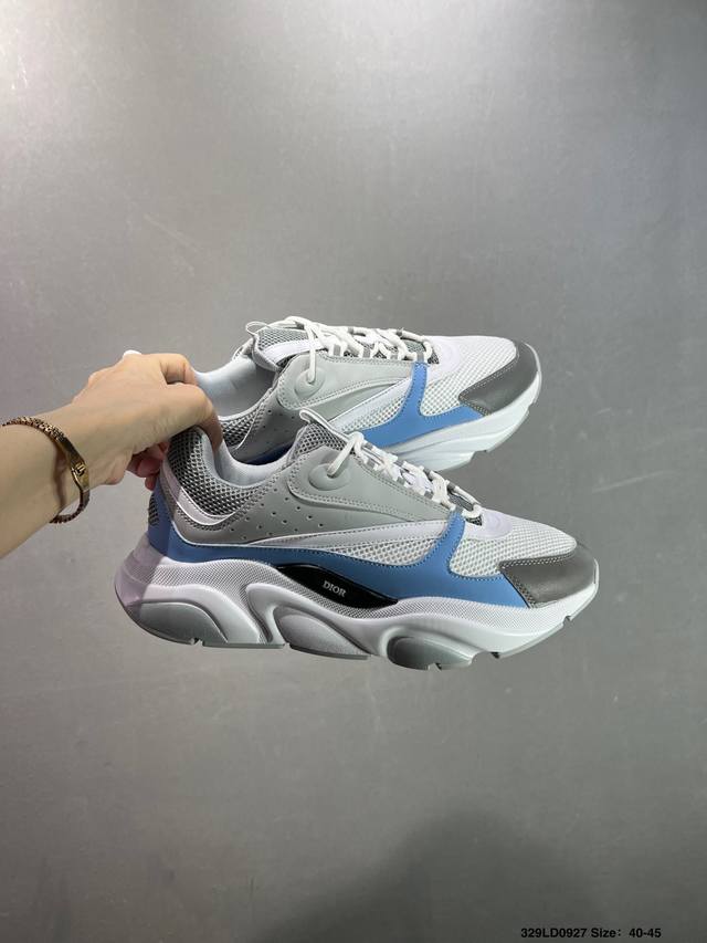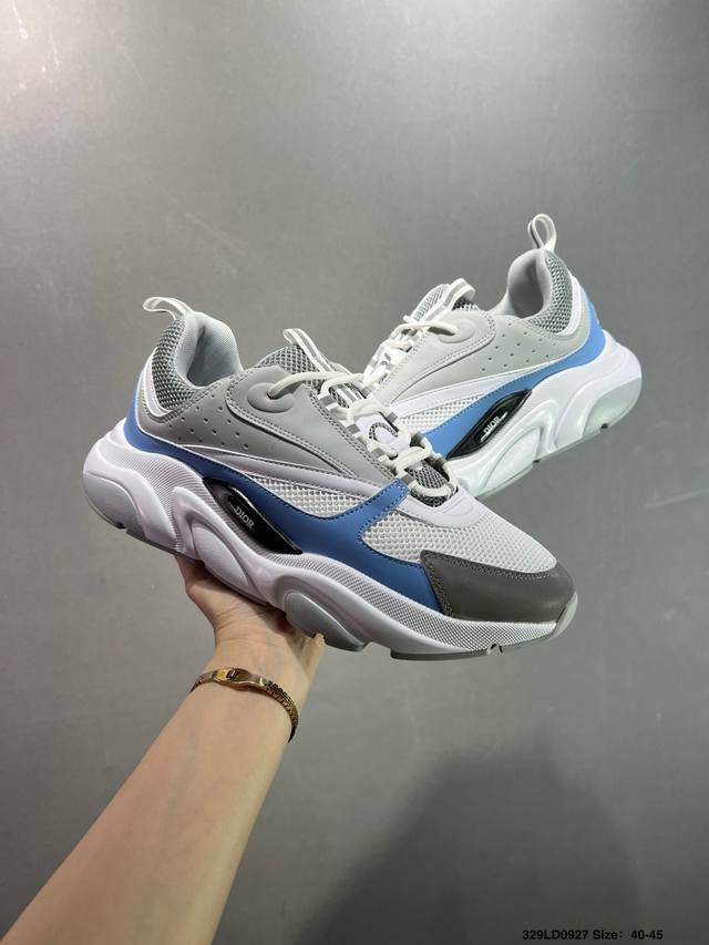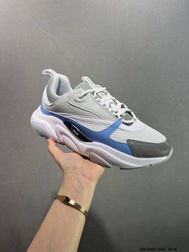 Dior mesh low-top sports casual shoes. This series is carefully crafted from black mesh mesh, white and blue technical materials, decorated with reflective "Cd30" graphic logo, and has an extremely lightweight carved rubber sole with iconic embellishments to enhance the style. The internal stretch details create an ideal wearing experience. It can be paired with various casual styles to show a fashionable and modern sporty style. Sizes: 36 37 35 39 40 41 42 43 44 45