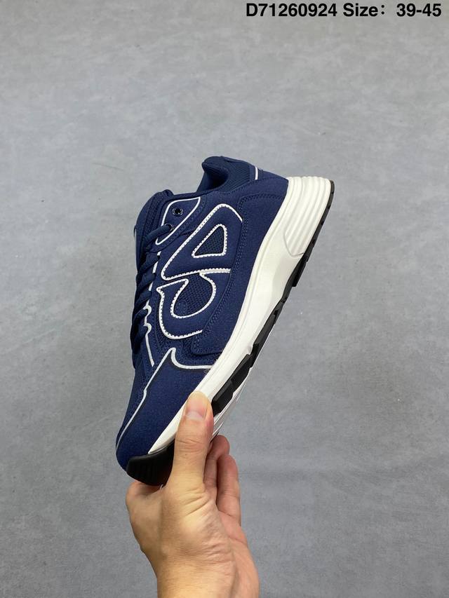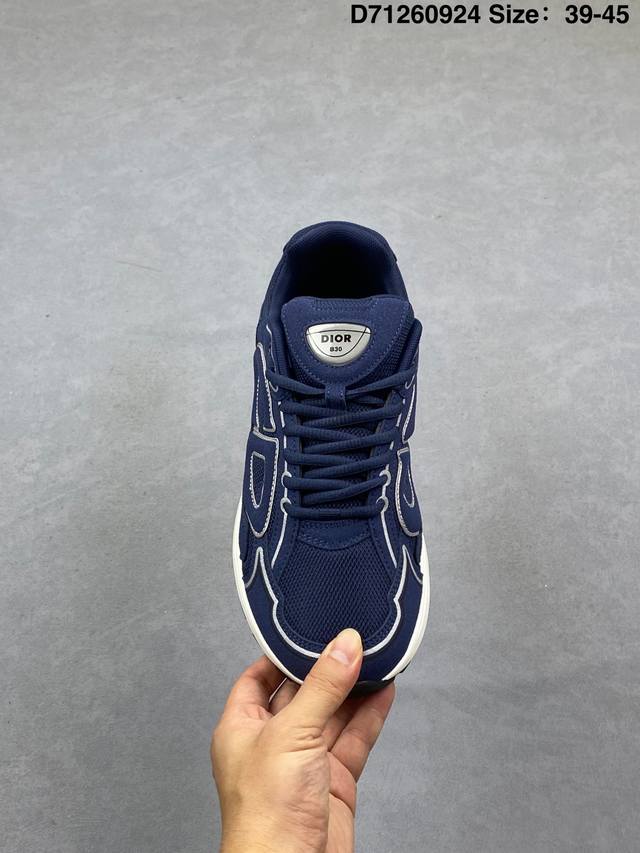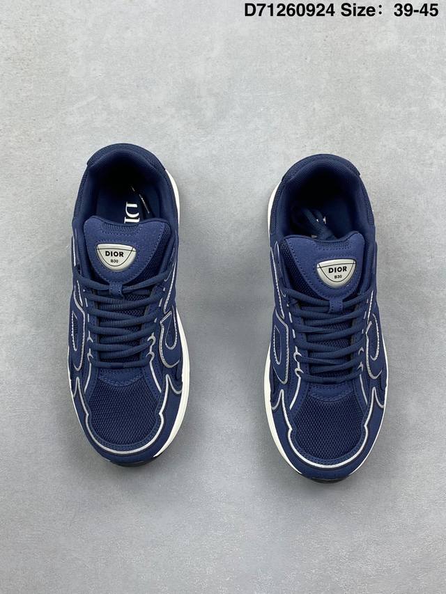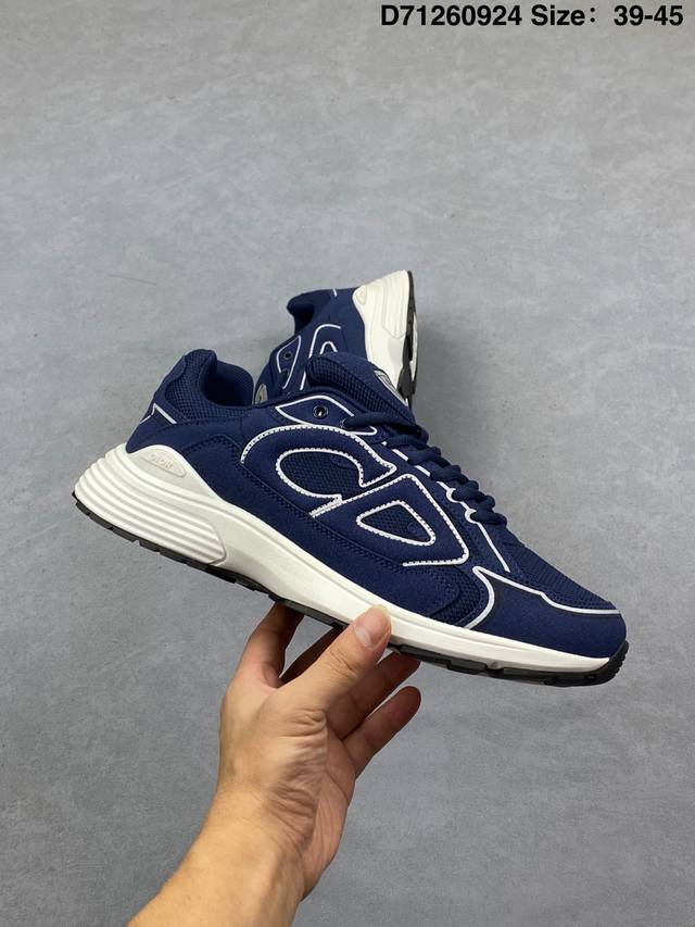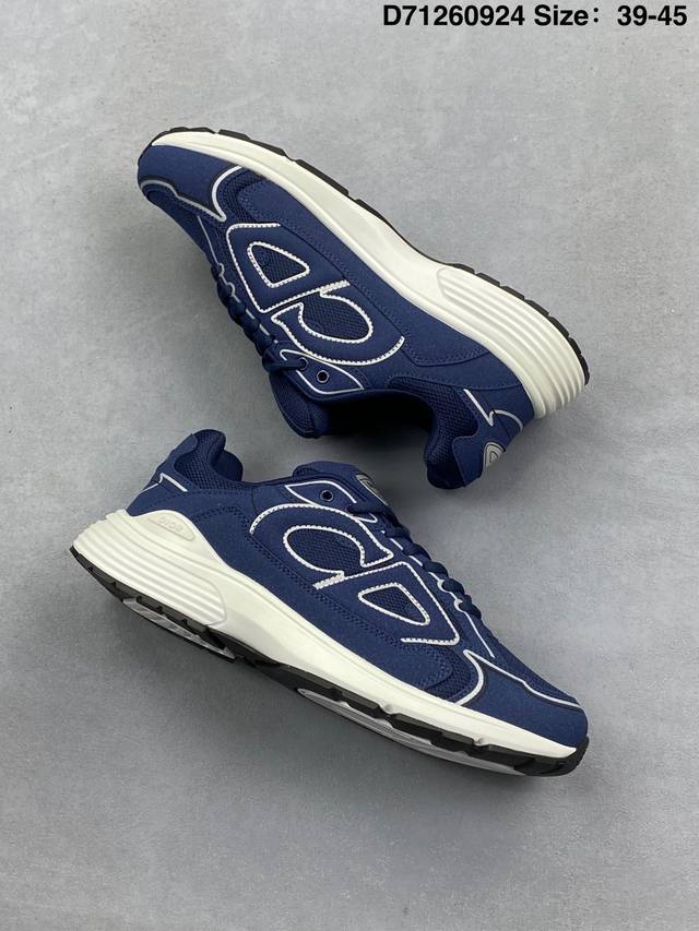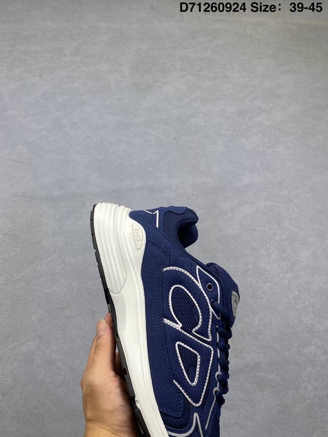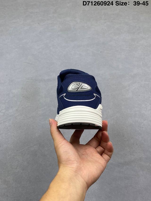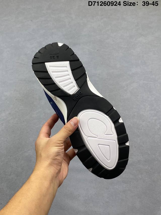Dior mesh low-top sports casual shoes. This series is made of black mesh mesh, white and blue technical materials. It is decorated with reflective "Cd30" graphic logo. The lightweight carved rubber sole is decorated with iconic embellishments to enhance the style. The inner stretch details create an ideal comfortable wearing experience. It can be paired with various casual styles to show a fashionable and modern sporty style.