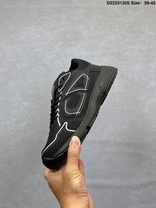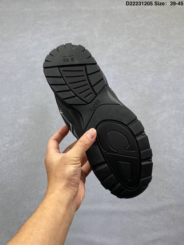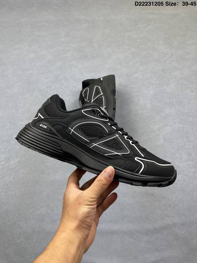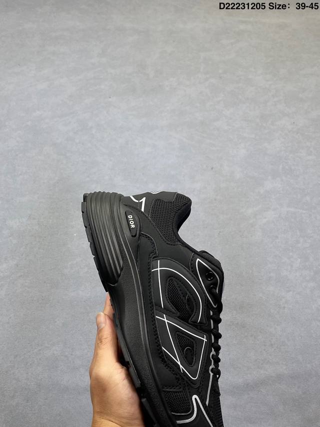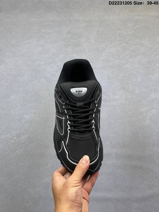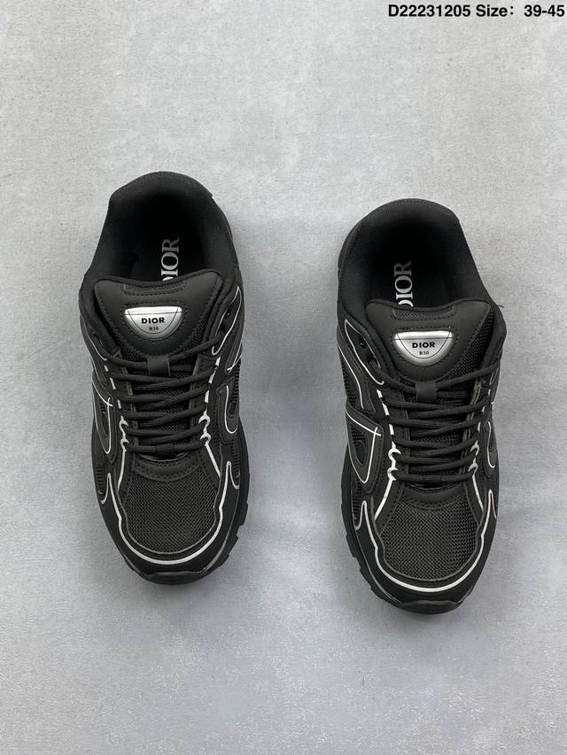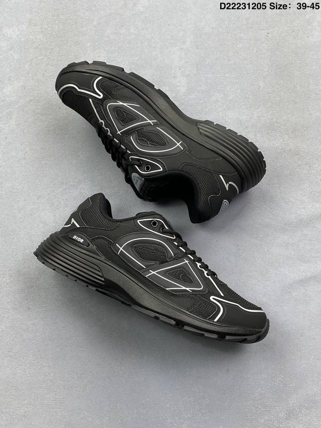 Dior Mesh Low-Top Sporty Sneakers. This series features a black mesh upper with white and colored technical materials, meticulously crafted and adorned with a reflective "Cd30" graphic logo. The lightweight, sculpted outer layer and rubber sole with signature dots enhance the overall style. Internal elastic details create a comfortable wearing experience. It can be paired with various casual styles to showcase a fashionable and modern sporty look. Product Code: 3Sn279Zrf H900 Size: As shown D22231205