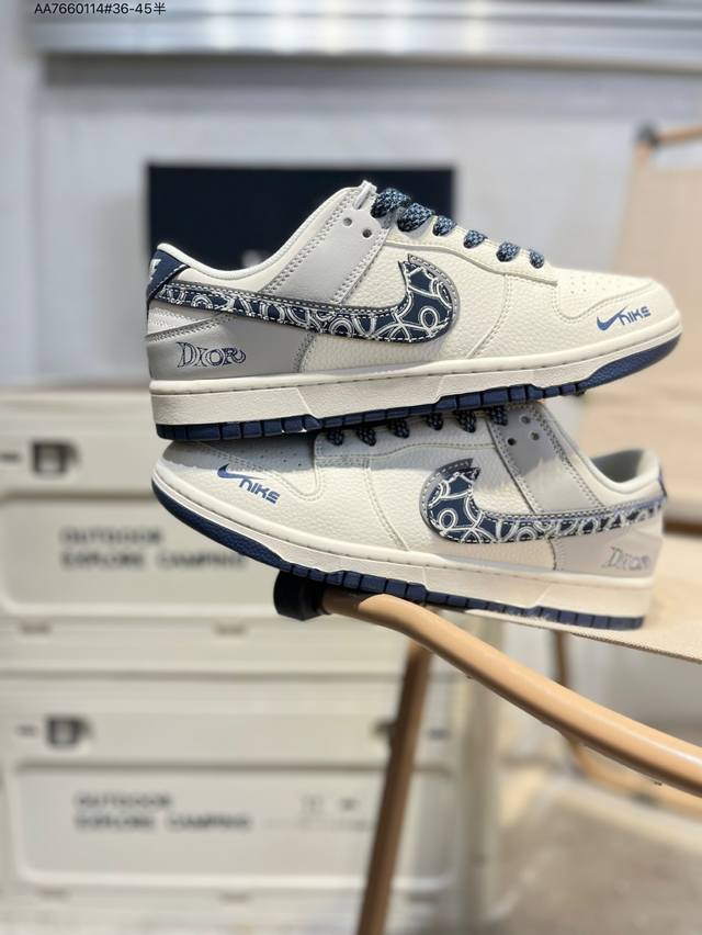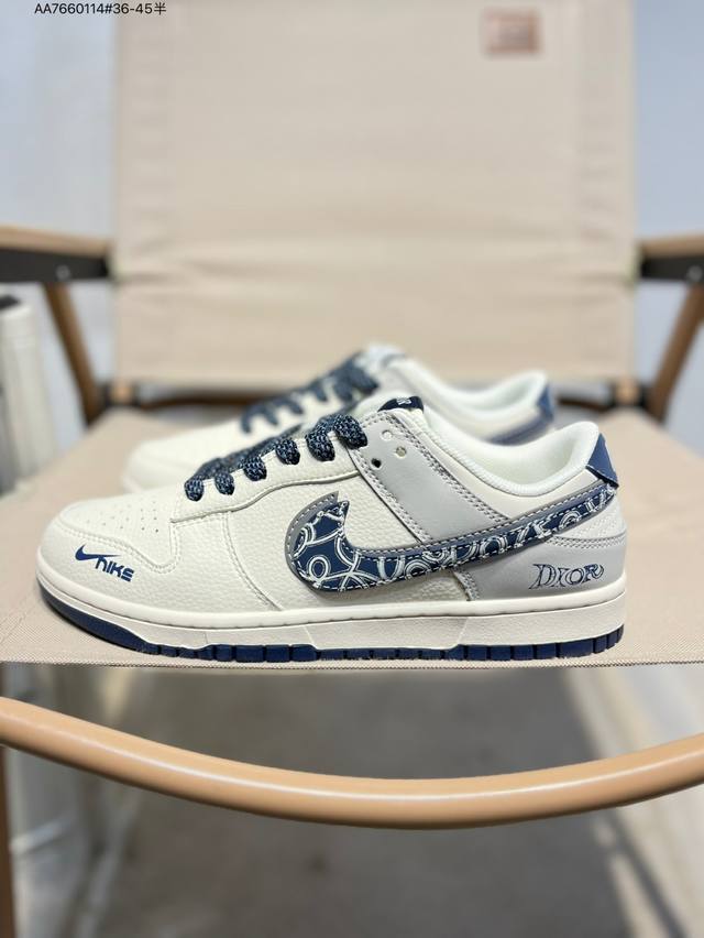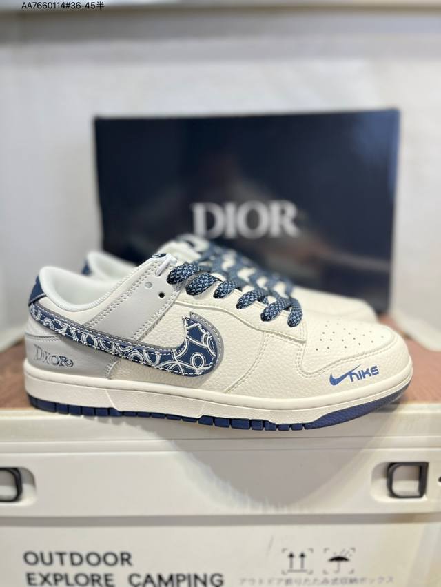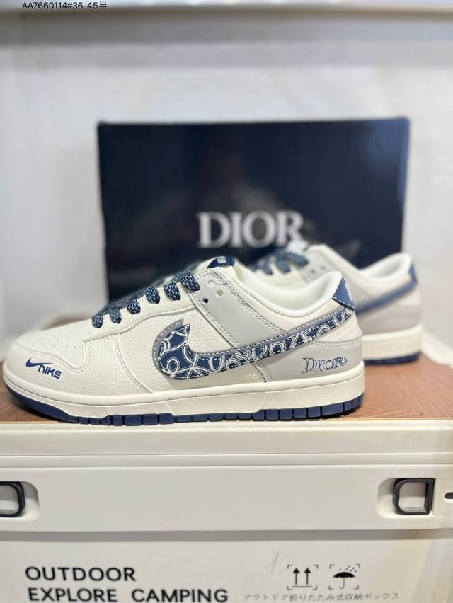 Dior x Nike Sb Dunk Low, a highly recommended new colorway from a leading manufacturer. Made from genuine top-grain material and featuring an exclusive, distilled finish. This shoe offers a superior visual and foot-feeling experience. Highly authentic quality and cleanliness. The leather is meticulously cut, free of burrs, and features impeccable embroidery. Hs 6 Aa7660114#36-45 semi-