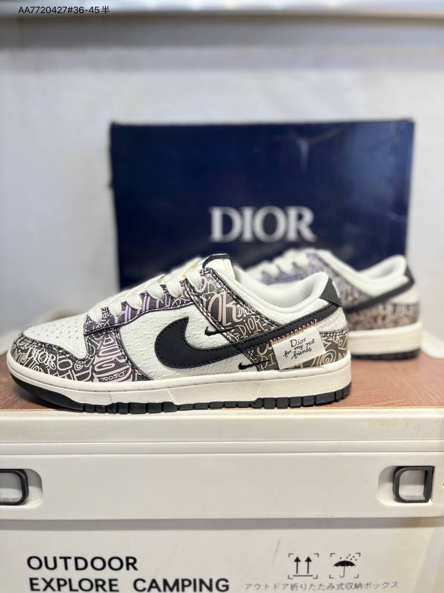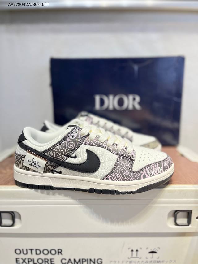 Dior x Nike SB Dunk Low, Highly Recommended New Colorway from Major Factory. Made with original top-grain material and exclusive design using steam distillation. Offers a superior visual and tactile experience. High-quality factory-made, exceptionally clean. Features include electro-embroidery, clean leather cutting with no rough edges, and perfect details. Xd1588 Aa7720427# Sizes 36-45.5.