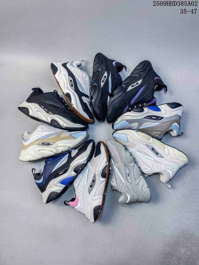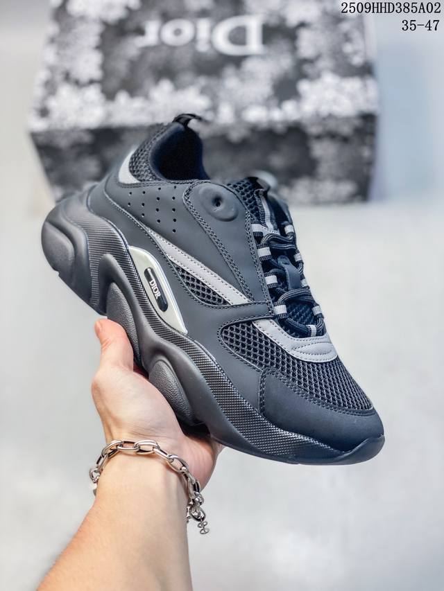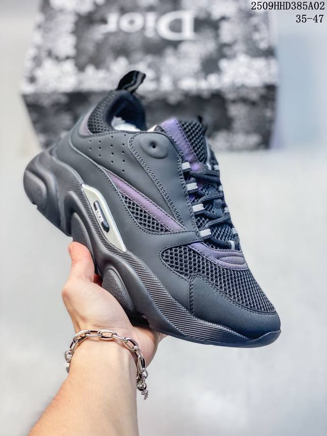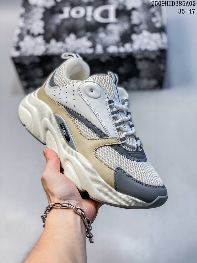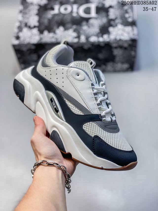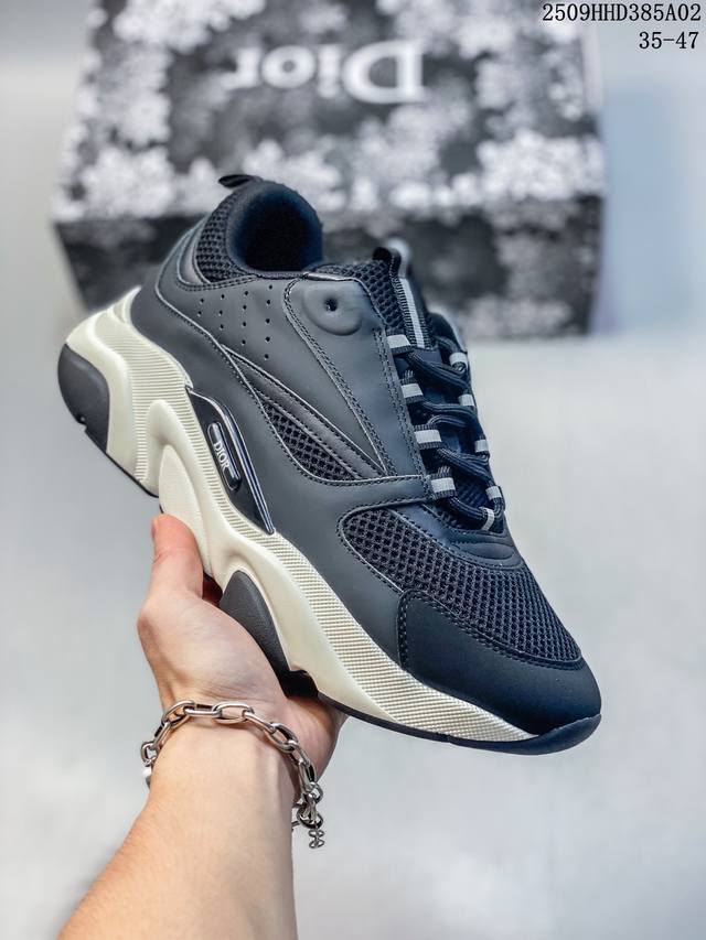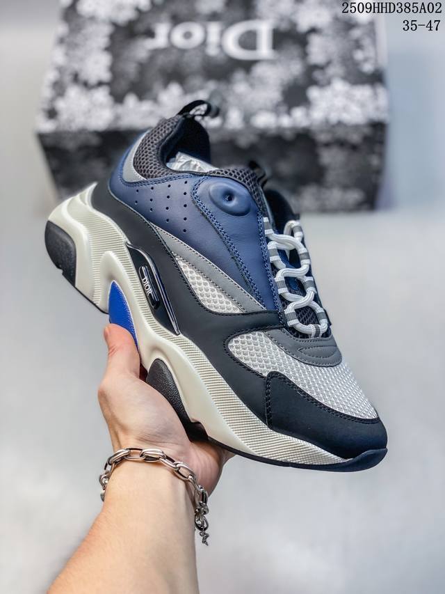 Made in Guangdong, original last, original paper version data development, and counter shopping bag and accessories. Compression-resistant kraft paper packaging for express delivery, made of smooth cowhide leather and mesh fabric, with a sweat-wicking mesh laminated to sea glass. The CD embossed insole features an exclusive TPU elastic midsole and a Tr glossy, durable, serrated rubber outsole. This French luxury fashion brand, the Dior Homme B22 Trainer Sneaker, is a retro, thick-soled, dad-style casual running shoe with a "raw rubber sole."