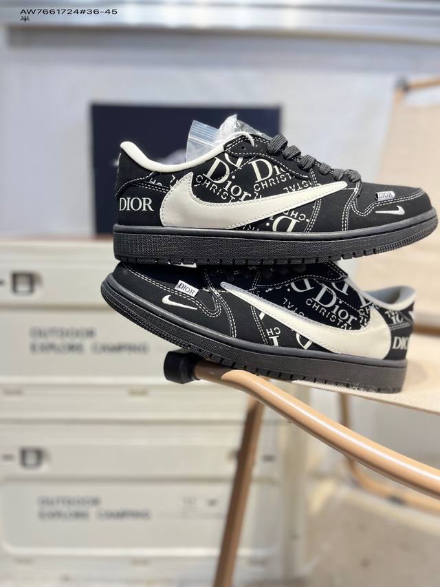 Factory Grade Top Layer Leather Dior X Jordan Air Jordan 1 Low AJ1 Low-Top Basketball Shoes Official Synchronized Colorway Original Product
