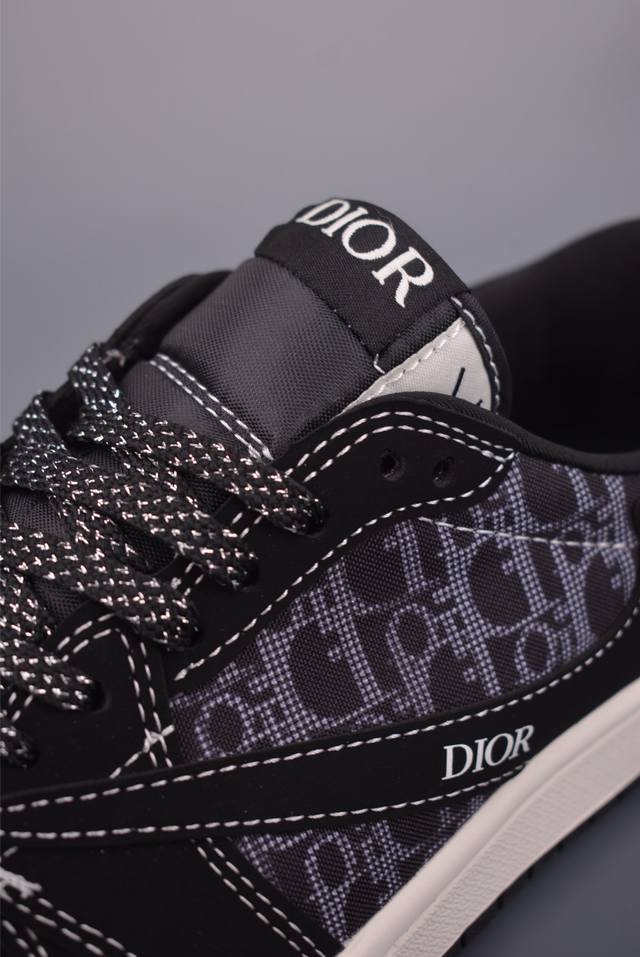 Fragment X Travis Scott X Dior DDD Air Jordan 1 Low Three-Way Collaboration Reverse Swoosh DDD This new three-way collaboration low-top reverse swoosh shoe continues the black toe design. The entire shoe is crafted from pebbled leather, featuring a white reverse swoosh on the waist and embellished with Travis Scott's iconic logo. The heel uses Hiroshi Fujiwara's signature blue as the main color, perfecting Fragment Design's signature white, blue, and black design style. The left and right shoes are decorated with Travis Scott's ghost face and Jordan Wings respectively, showcasing the luxurious style of the three-way collaboration. DDD Official Style Code: Jw1188 1672226 DDD Sizes: 36 36.5 37.5 38 38.5 39 40 40.5 41 42 42.5 43 44 44.5 45 DDD