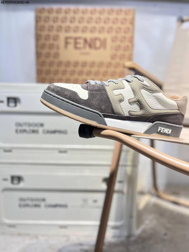 Fendi Match Sneaters - Fendi's top-tier shoes! Unrivaled in the market, perfectly replicating every detail! Exclusive retail offer for leather low-top fashion sports sneakers! Over 20 meticulously replicated details! Outperforms all other versions on the market! Exclusive original set and accessories! Official source, original order! Complete set of boutique packaging and accessories purchased directly from the original! High-quality seamless glue application technology with a last error of 0.05mm! Goodyear welt construction for maximum flexibility and prevents glue separation! Original shoe look, environmentally friendly and odorless! Upper made of suede and leather combination. 7 E1493 Ae7021042#35-46