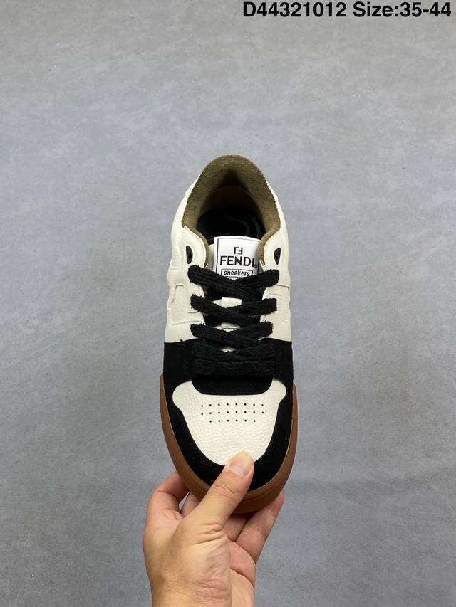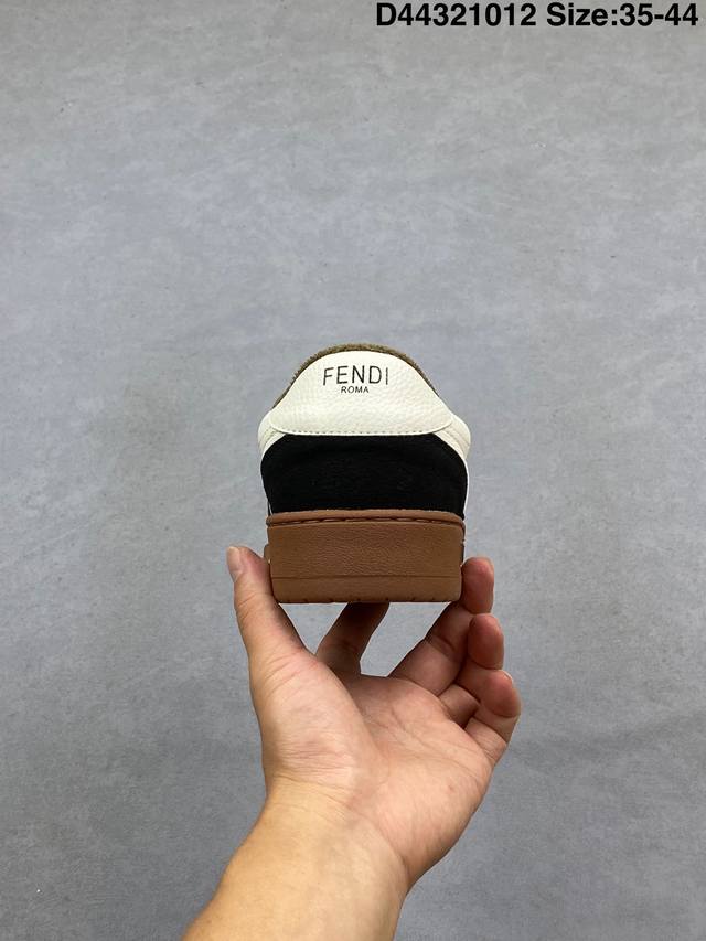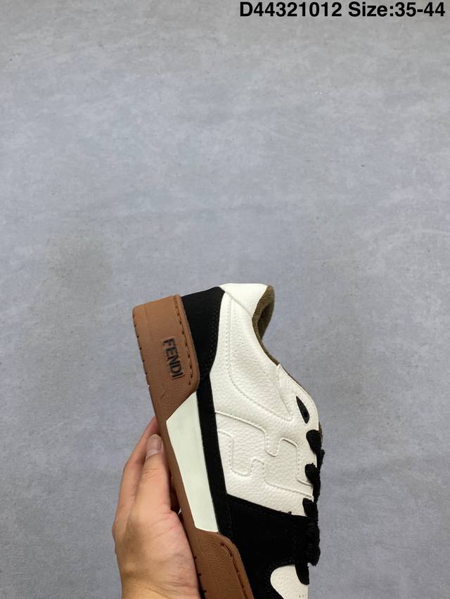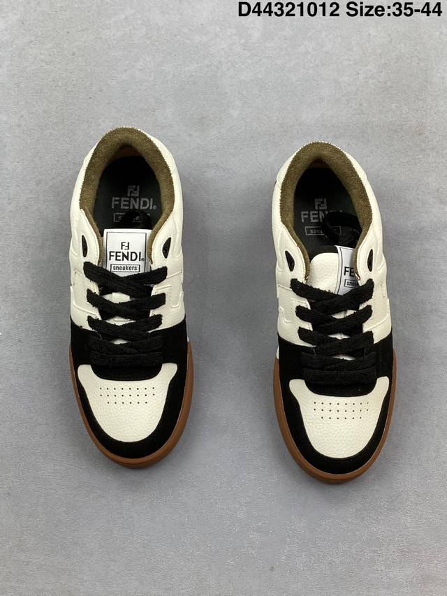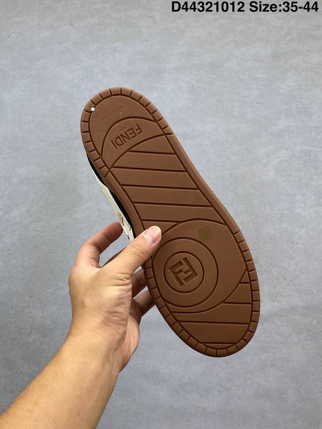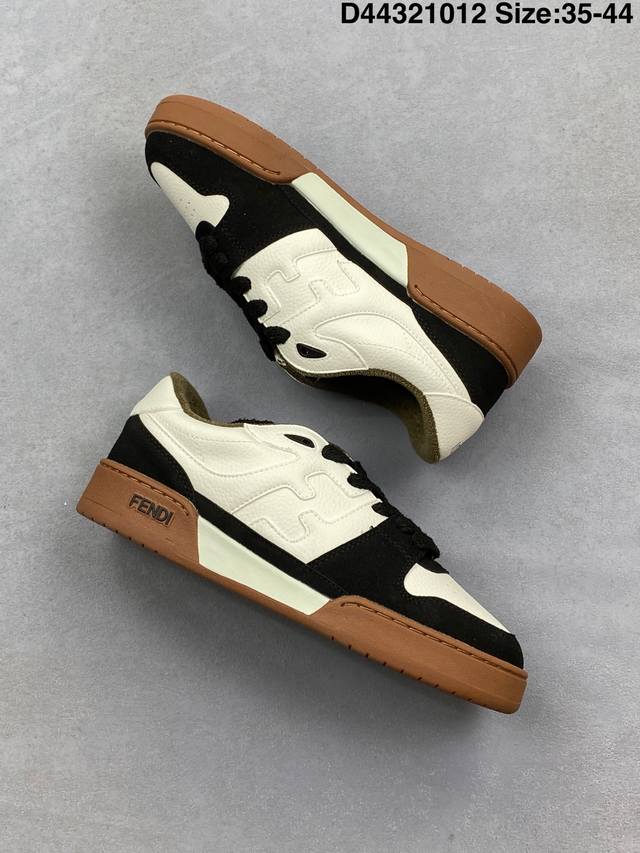 Fendi's corporate-grade competition series features a combination of pebbled fiber leather and suede upper, an insole with embedded EVA foam cushioning, and an external durable rubber outsole. A favorite among celebrities, this shoe embodies a flowing aesthetic. The renowned Italian luxury brand Fendi's Match Sneaker Low competition series low-top retro versatile casual athletic sneakers "211F218