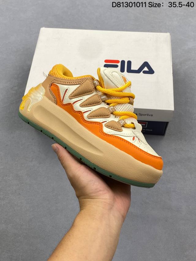 Extracting elements from its retro upper and combining them with the sole of a skateboard shoe for a modern spliced mixed-style design. The TPU on the side of the shoe retains the wear resistance and support of a skateboard. The 3cm thick sole increases height and lengthens the leg line proportions. The outsole design is inspired by professional skateboarding moves - the double-slide move. Made of Eva rubber, it feels comfortable underfoot