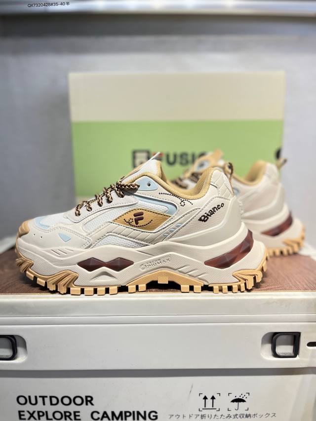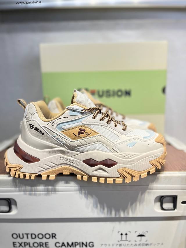 Fila Fusion Bianco Hard Candy Fabric Synthetic Leather Patchwork Shock Absorbent Anti-slip Wear-resistant Breathable Low-top Dad Shoes T12W541005Fab Qx7320428# 35-40 Half DDD