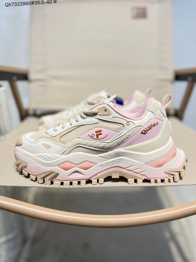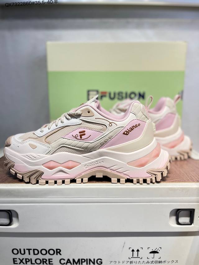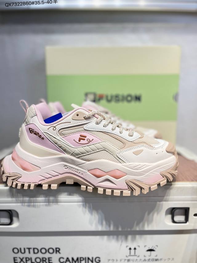 Fila Fusion Bianco Hard Candy Fabric Synthetic Leather Patchwork Shock Absorbent Anti-slip Wear-resistant Breathable Low-top Dad Shoes T12W541005Fgc Qx7322860# 35.5-40 Half