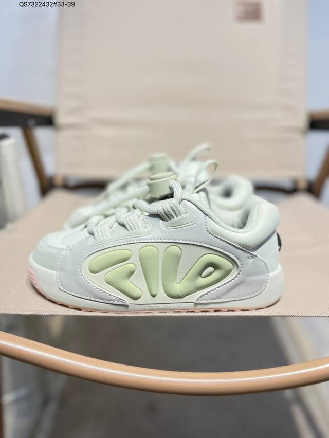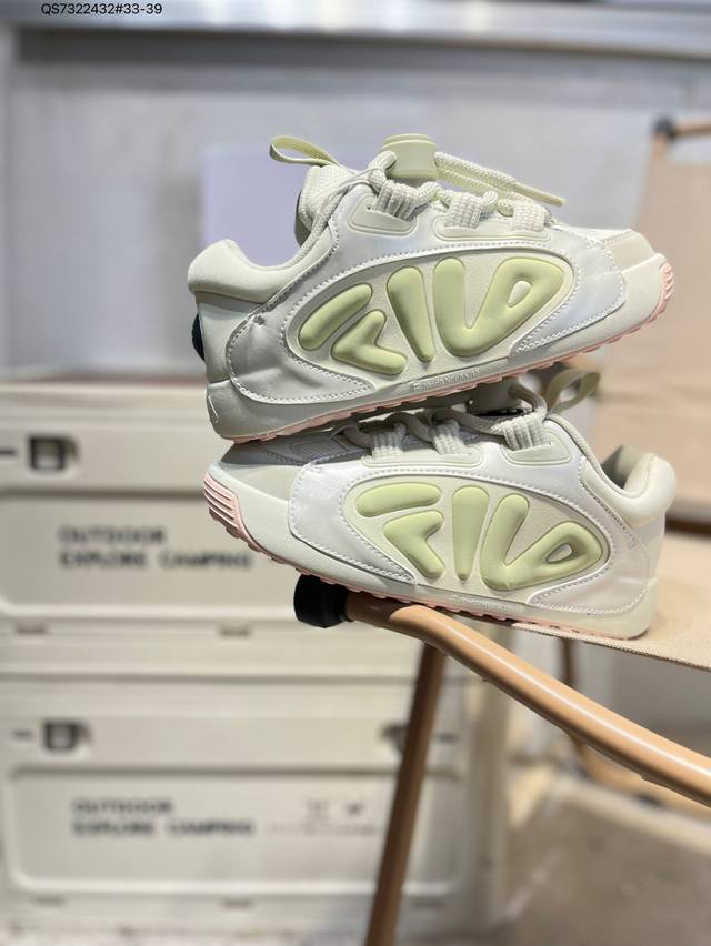 Fila Fusion low-top sneakers. Focusing on fashion and sports culture, Filafusion collaborates with popular sports like skateboarding, basketball, baseball, and cycling. Utilizing design elements like patchwork, deconstruction, and contrasting colors, the shoes create a striking color impact, presenting a new trendy sports aesthetic. Fila K15G431307Fwc Qs7322432#33-39