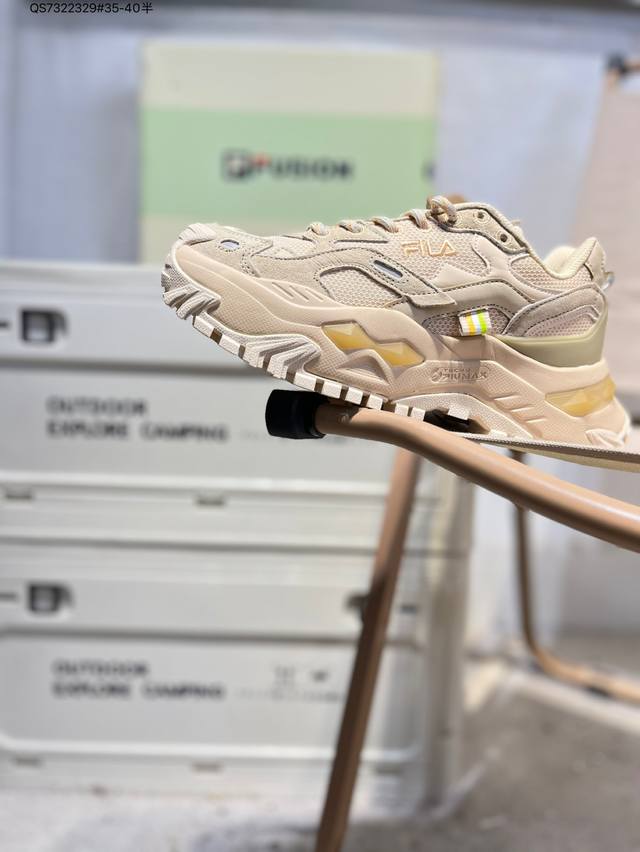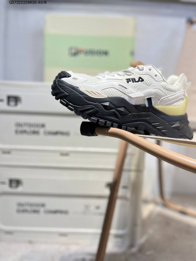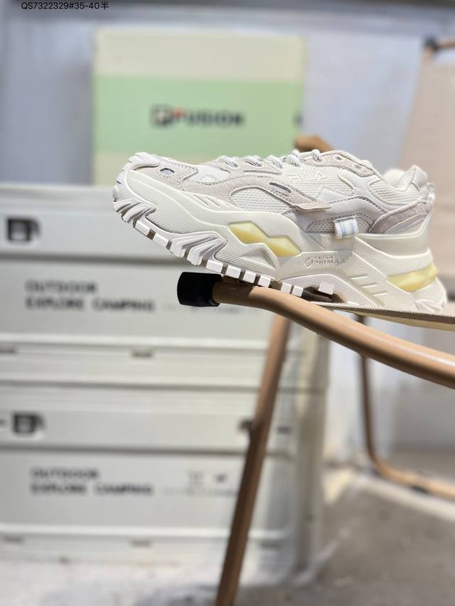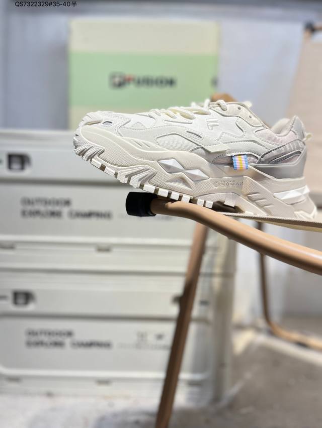 Fila Fusion low-top sneakers. Focusing on fashion and sports culture, Filafusion collaborates with popular sports like skateboarding, basketball, baseball, and cycling. The shoes utilize design elements like patchwork, deconstruction, and contrasting colors, creating a striking color impact and presenting a new trendy sports aesthetic. T12W311301Fmb Qs7322329#35-40 Half