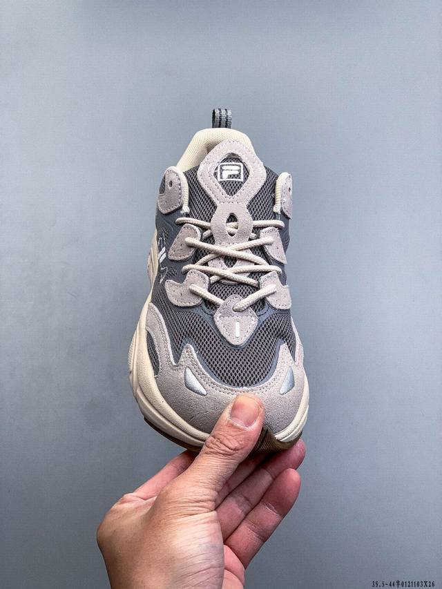 Fila Fusion Mars Retro Running Shoes DDD Original shoe design, custom-made, authentic, synchronized shoe materials, leather and suede splicing with breathable mesh, featuring a retro and trendy color-blocked design for a strong visual impact, extra-thick EVA soft sole for lightweight comfort, and includes a hidden height-increasing effect DDD 0121 3X26 DDD