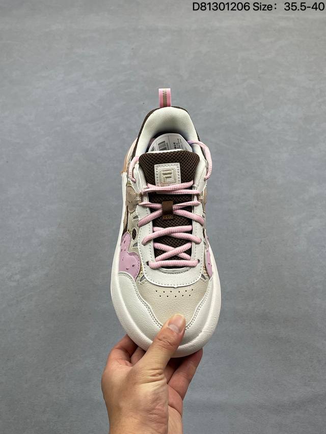 Fila Fusion Trendy Casual Sports Sneakers, Original Version. The upper design is inspired by the historical basketball shoe Smash, incorporating elements from its retro upper and combining them with a modern skateboard sole for a mixed-style design. The TPU on the side retains the durability and support of a skateboard. The 3cm thick sole adds height and elongates the leg line. The outsole design is inspired by professional skateboarding moves