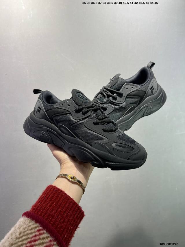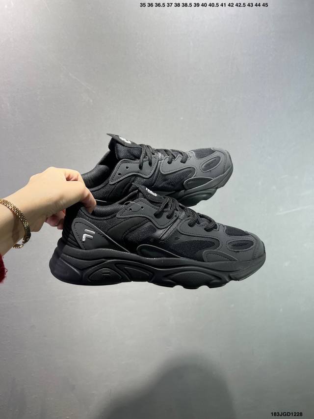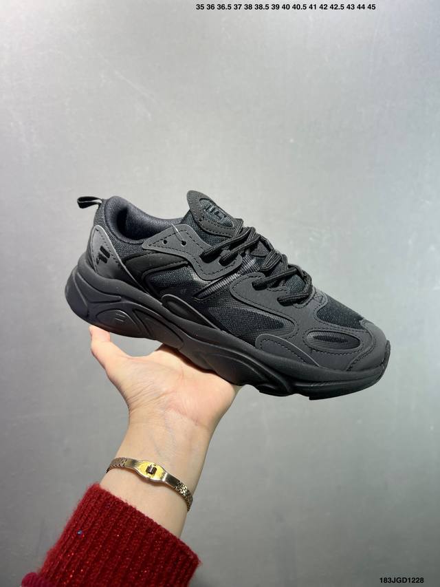 Fila Mars 2.0 Low-Top Retro Versatile Sports Dad Shoes. Made with high-quality top-grain leather trim and breathable fiber mesh upper. Features a lightweight EVA foam cushioning midsole and a durable rubber outsole. Product Code: F12W141116Fbk. Sizes: 35.5, 36, 36.5, 37.5, 38, 38.5, 39, 40, 40.5, 41, 42, 42.5, 43, 44. ID: 183Jgd1228