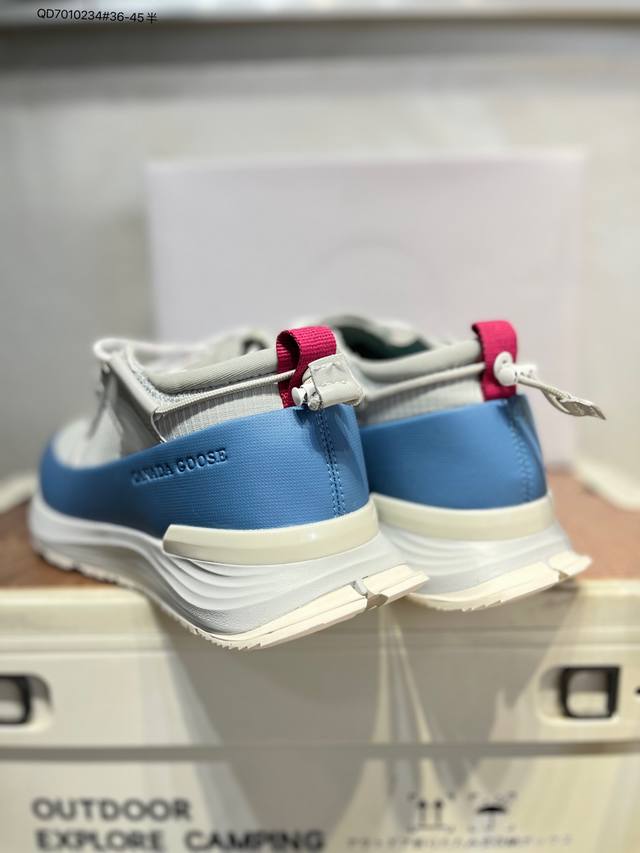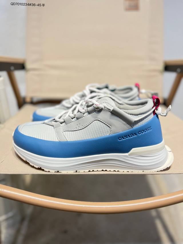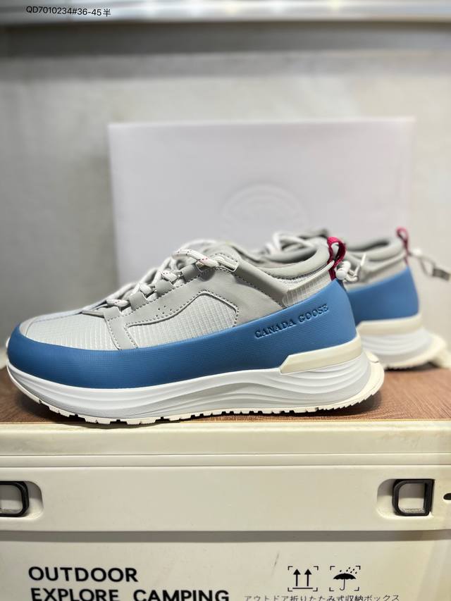 Original last development paper last#Uses waterproof and wear-resistant fiber leather combination with color-fixed suede and top-grain leather trim upper material#Midsole height increase and thickening shock absorption PU combination anti-slip and wear-resistant serrated outsole Autumn is boundless, move forward in a free world! Canada Goose Glacier Trail Sneaker, a low-top, thick-soled, lightweight outdoor hiking shoe in "off-white, navy blue and black" 7785M_600 DDD Barcode code: 617Gdd1014 DDD Canada Goose launches new autumn and winter collections, adding seasonal texture to your wardrobe, giving you a variety of styling possibilities, allowing you to fully express your personality and explore the boundless nature with a fresh look. This season, based on upgraded functional fabrics and deep hues, presents a variety of stylish apparel and footwear accessories, easily coping with the changeable weather during seasonal transitions. Whether navigating city streets or traversing tranquil wilderness, these shoes offer comprehensive protection at all times, allowing for unrestricted movement. Embrace the changing seasons with lightness and explore vast new horizons. The Canada Goose Glacier Trail sneakers are made with innovative breathable Hdry technology, integrating superior performance and versatility into a stylish design. Multiple fresh and natural new colorways easily adapt to different scenarios, accompanying you through city streets or encountering natural wonders on your exciting journeys. 7785W Qd7010234#36-45?DDD