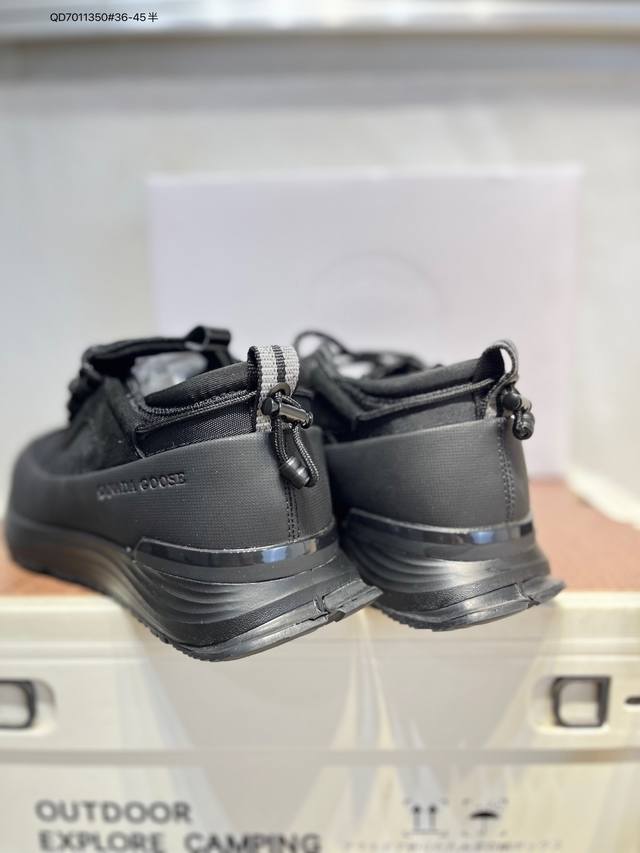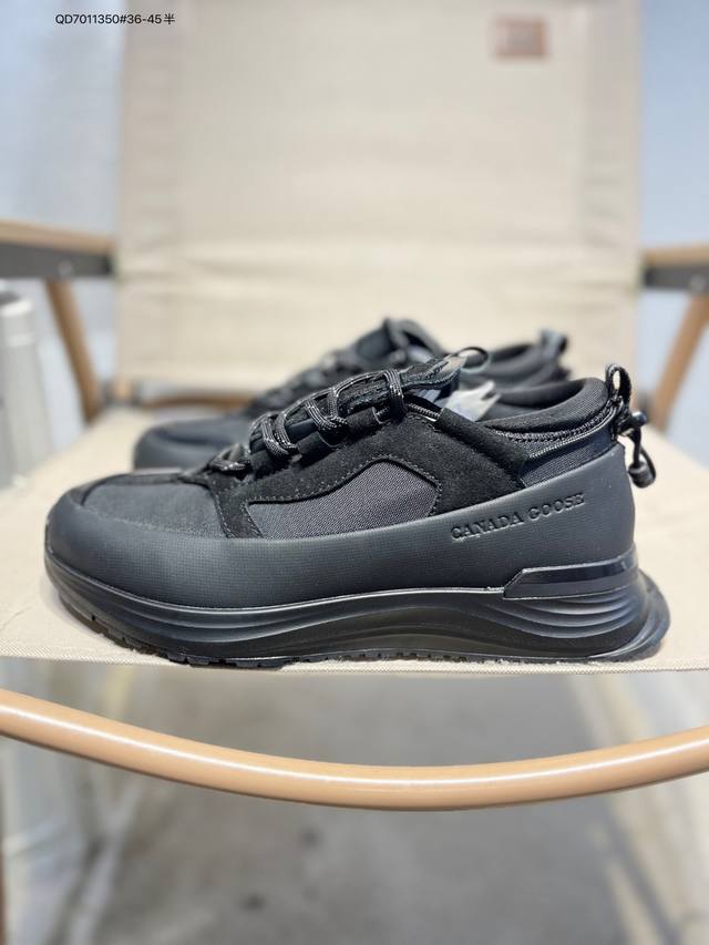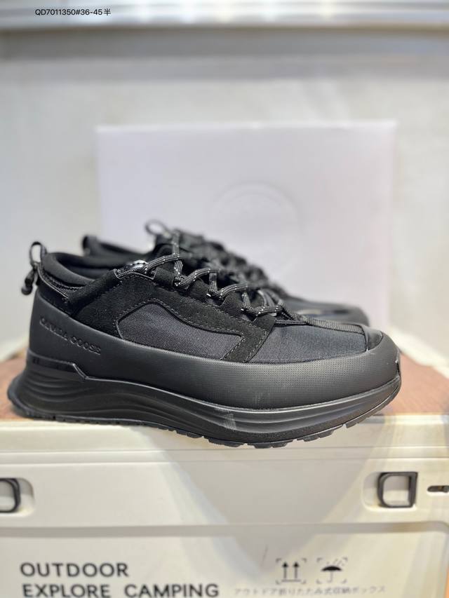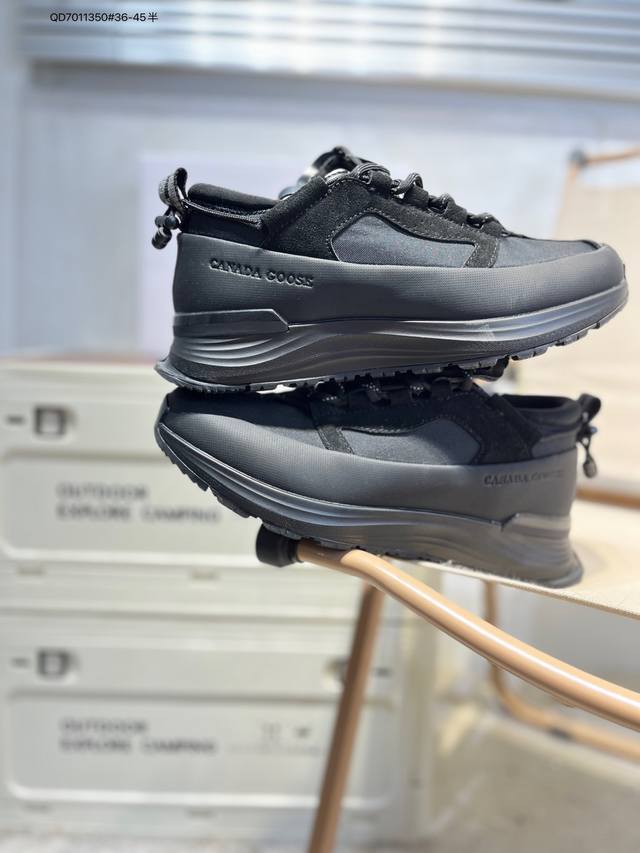 Original last development paper last#Waterproof and wear-resistant fiber leather combination upper material with color-fixed suede and top-grain leather trim#Midsole height increase and thickened shock-absorbing PU combination anti-slip and wear-resistant serrated outsole Autumn is boundless, move forward in a free world! Canada Goose Glacier Trail Sneaker, a low-top, thick-soled, lightweight outdoor hiking shoe in "Off-white, Navy Blue, Black" 7785M_600 DDD Barcode: 617Gdd1014 DDD Canada Goose launches new autumn/winter collections, adding seasonal texture to your wardrobe, giving you diverse styling possibilities, allowing you to fully express your personality, and explore the boundless nature with a refreshed look. This season, based on upgraded functional fabrics and deep hues, presents a variety of stylish apparel and footwear accessories, easily coping with the changeable weather during seasonal transitions. Whether navigating city streets or traversing tranquil wilderness, these shoes offer comprehensive protection at all times, allowing for unrestricted movement. Embrace the changing seasons with lightness and explore new horizons. The Canada Goose Glacier Trail sneakers are made with innovative breathable Hdry technology, integrating superior performance and versatility into a stylish design. Multiple fresh and natural new colorways easily adapt to different scenarios, accompanying you through city streets or encountering natural wonders on your exciting journeys. 7785W Qd7011350#36-45?DDD