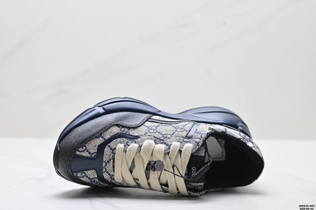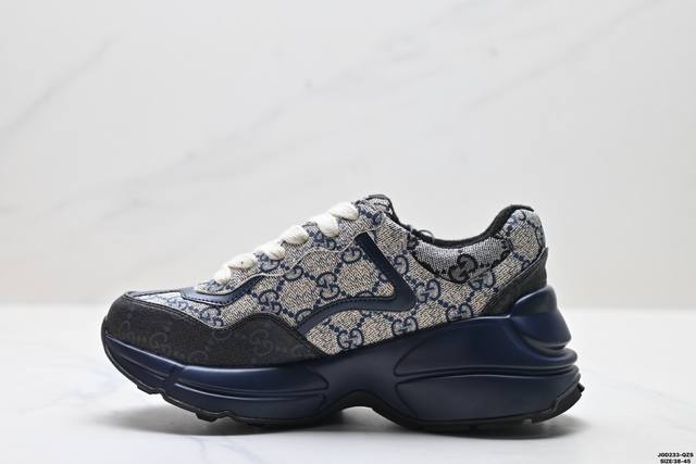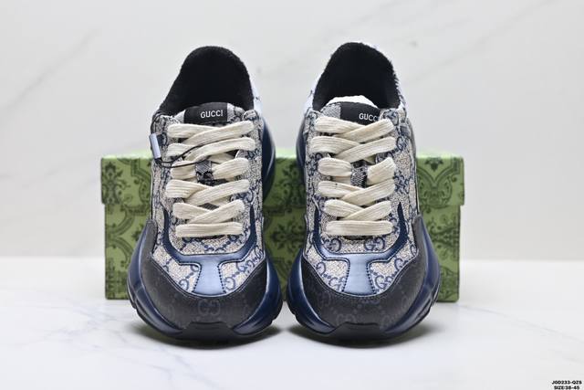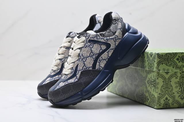 Authentic Gucci Rhyton Classic Low-Top Dad Shoes for Men, Beige Blue. Canvas material has a low environmental impact, which is why it has appeared in every collection for over a decade, becoming a classic material for the brand. This classic colorway makes this Rhyton sneaker an eye-catching highlight. Sizes: 39-45. Ld:Jgd233-Qzs