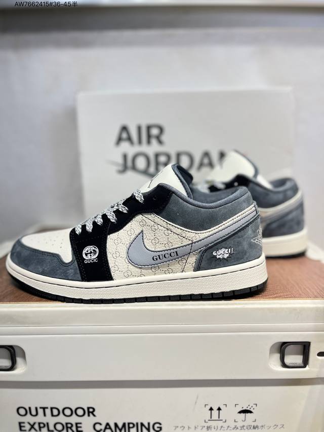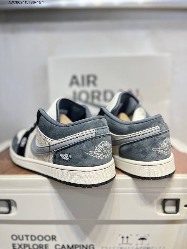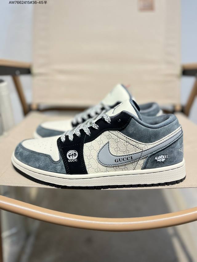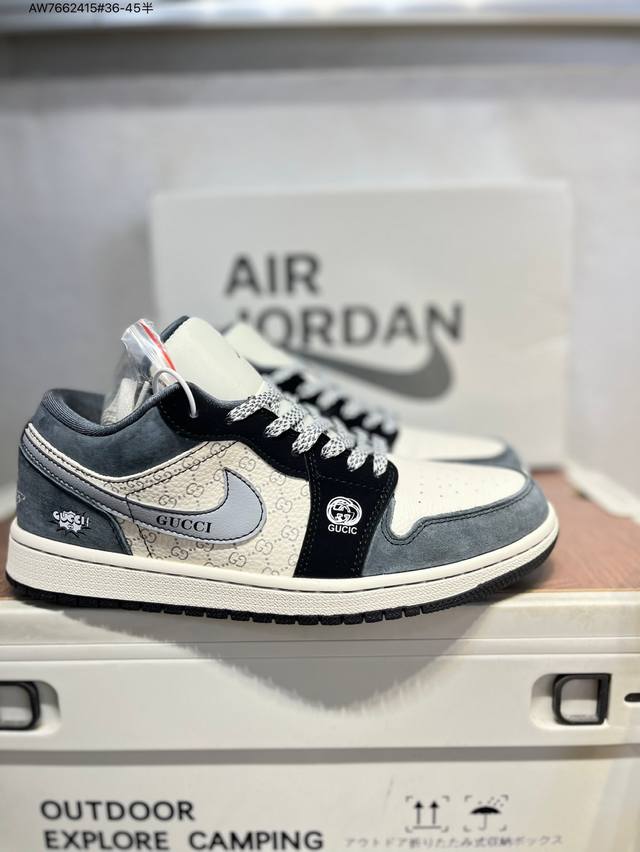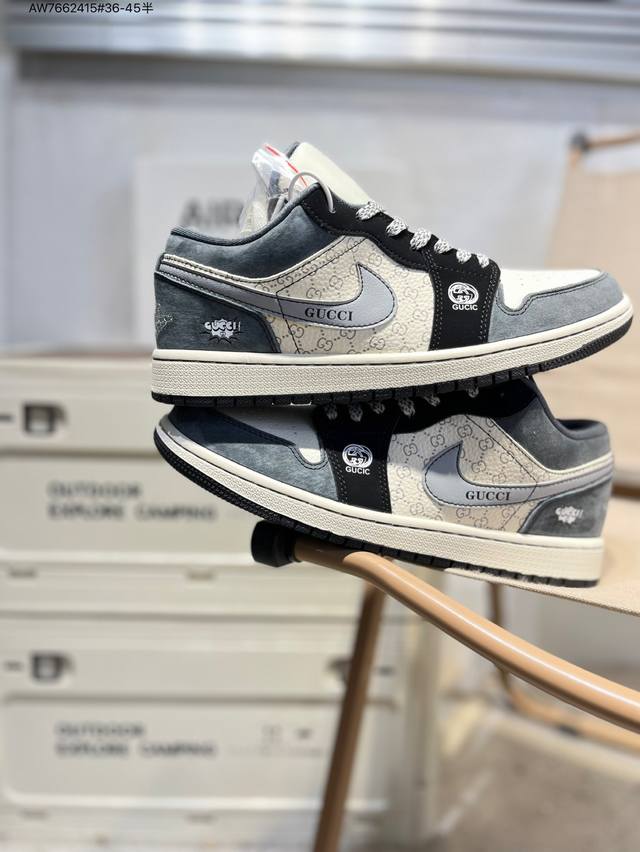 Corporate-grade top-grain leather Gucci x Jordan Air Jordan 1 Low Aj1 low-top series basketball shoes official synchronized colorway original product