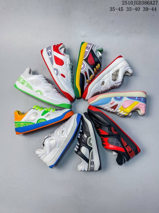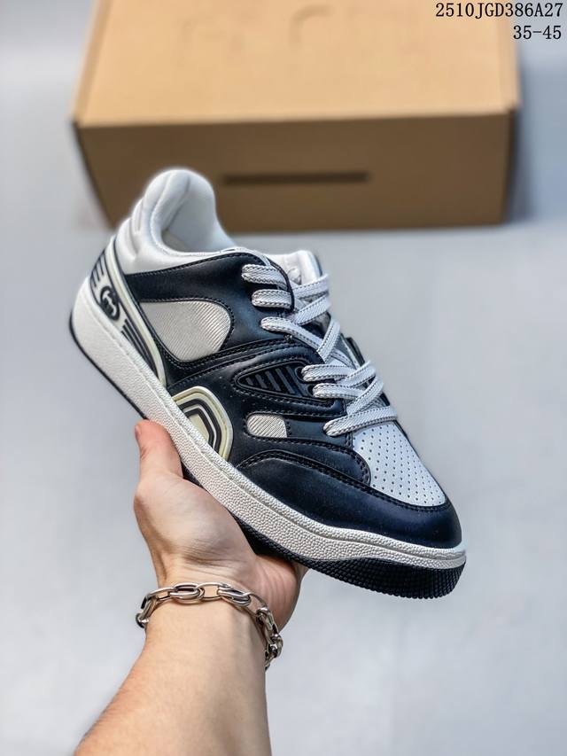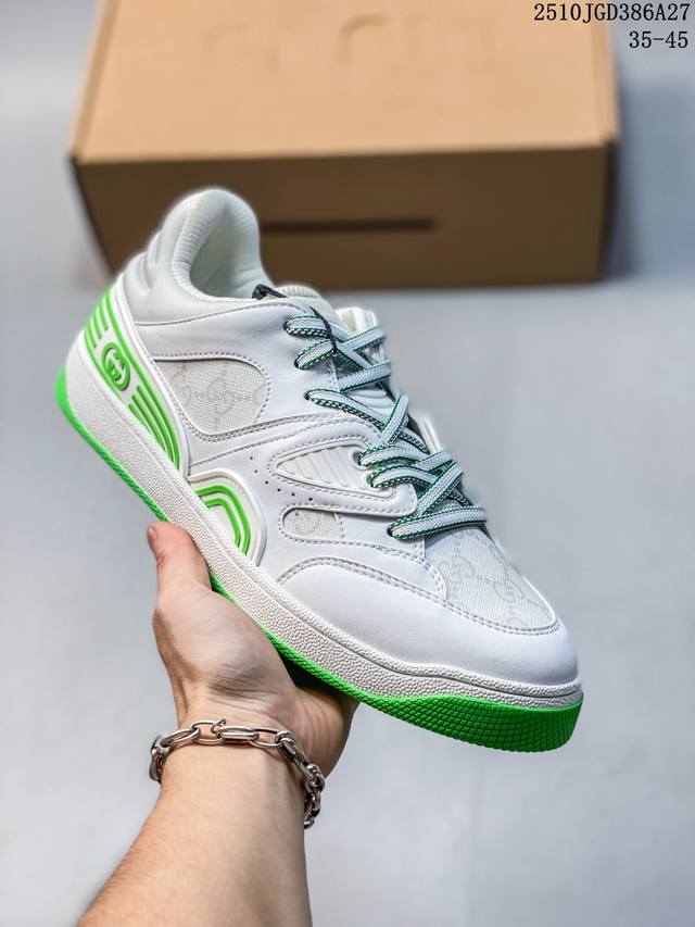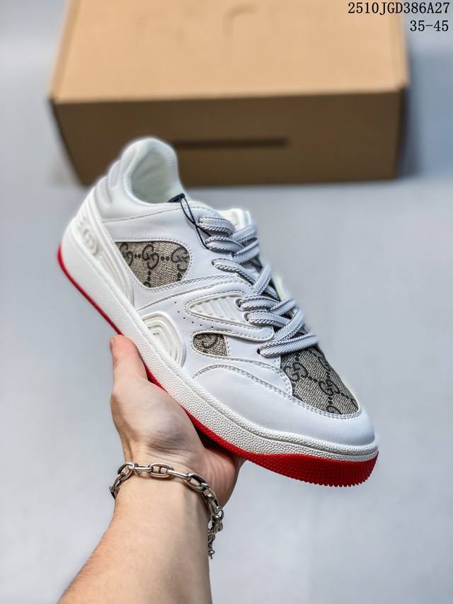 Double Eleven Special Offer! Guangdong Original High-End Gucci Basket Basketball Shoes, Low-Top, Couple Style! The Gucci Basket sneaker series is inspired by 90s basketball shoes. The entire design is very elaborate, incorporating iconic Gucci elements into the upper. The mixed colors are so beautiful, showcasing your individuality. It has a slightly distressed style. Gucci fans shouldn't miss it! This shoe is made from the new sustainable and environmentally friendly Demetra material, which has excellent soft and stretchy properties. This environmentally friendly material is mainly derived from animal-free, sustainable, and renewable sources. The sole is a molded rubber sole. Sizes: 35 36 37 38 39 40 41 42 43 44 45 (Item number: 10Jgd286A27)