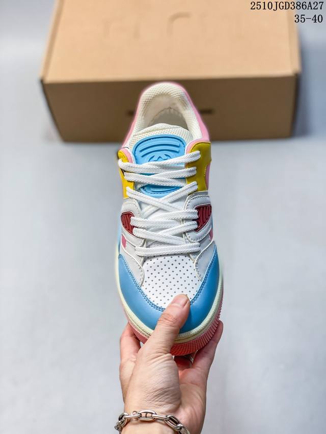 Double Eleven Special Offer! Guangdong Original High-End Gucci Basket Basketball Shoes, Low-Top, Couple Style! The Gucci Basket sneaker series is inspired by 90s basketball shoes. The entire design is very elaborate, incorporating iconic Gucci elements into the upper. The mixed colors are so beautiful, showcasing your individuality. It has a slightly distressed style. Gucci fans shouldn't miss it! This shoe is made from the new sustainable and environmentally friendly Demetra material, which has excellent soft and stretchy properties. This environmentally friendly material is mainly derived from animal-free, sustainable, and renewable sources. The sole is a molded rubber sole. Sizes: 35 36 37 38 39 40 41 42 43 44 45 (Item number: 10Jgd286A27)