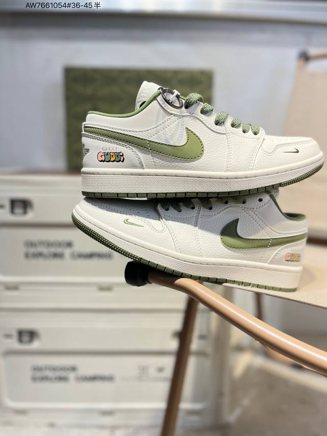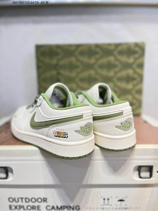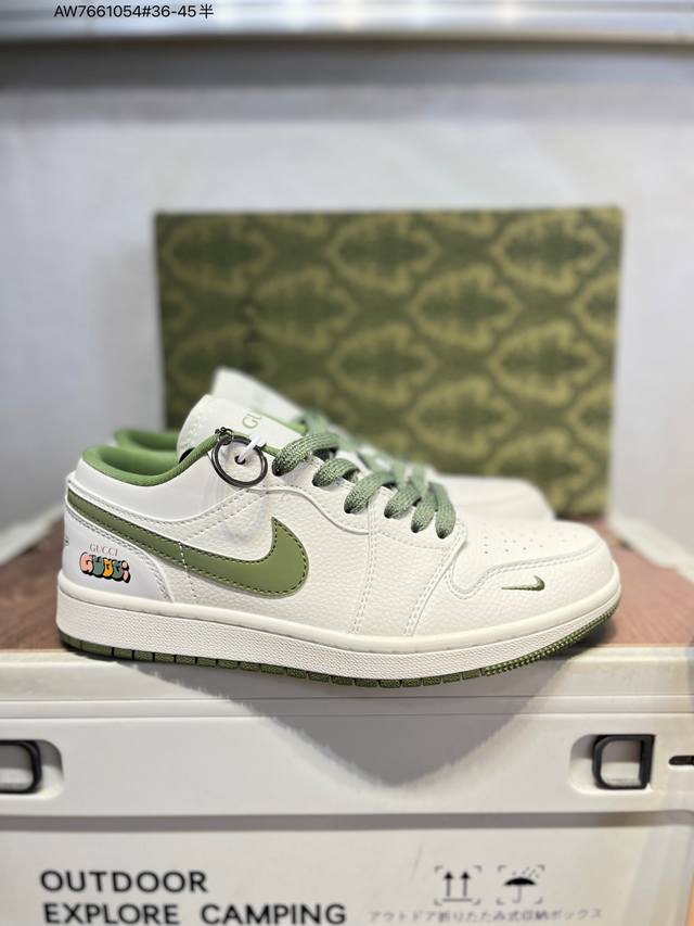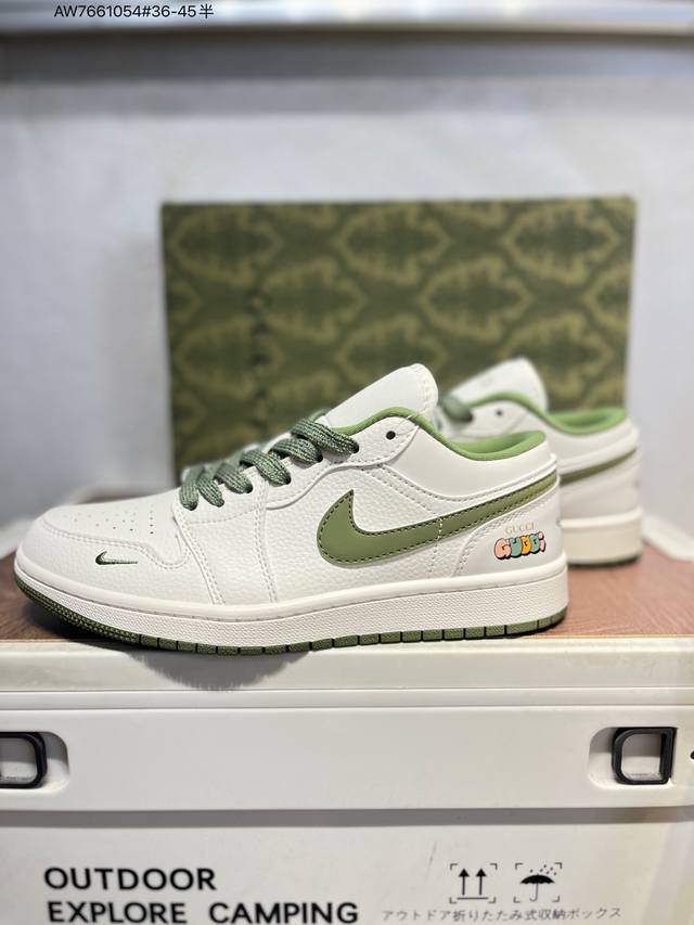 Factory Grade Top Grain Leather Gucci X Jordan Air Jordan 1 Low AJ1 Low-Top Basketball Shoes Official Synchronized Colorway Original Product