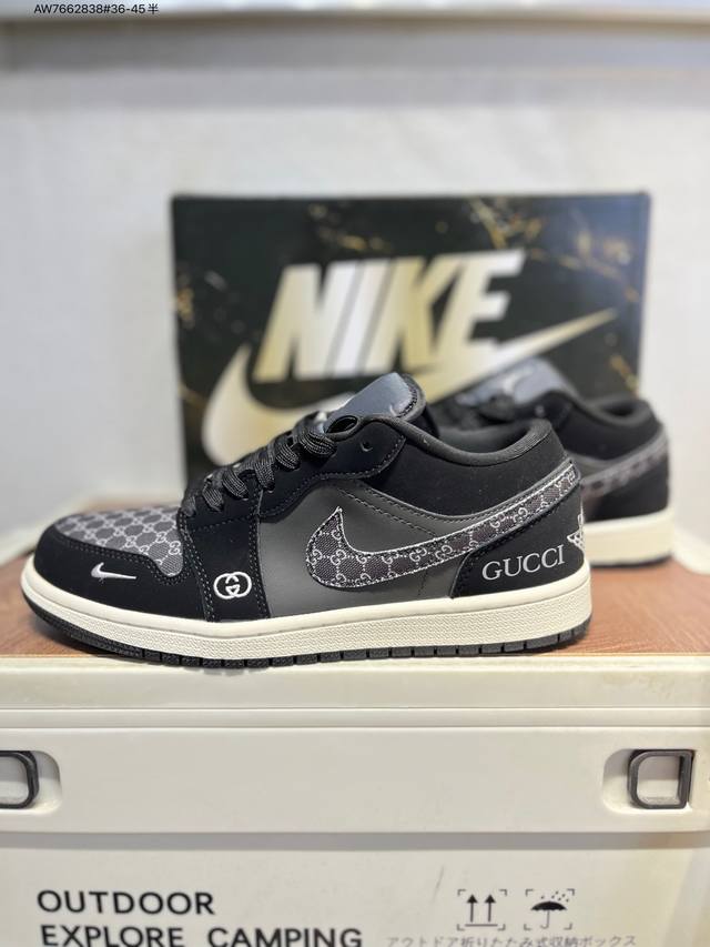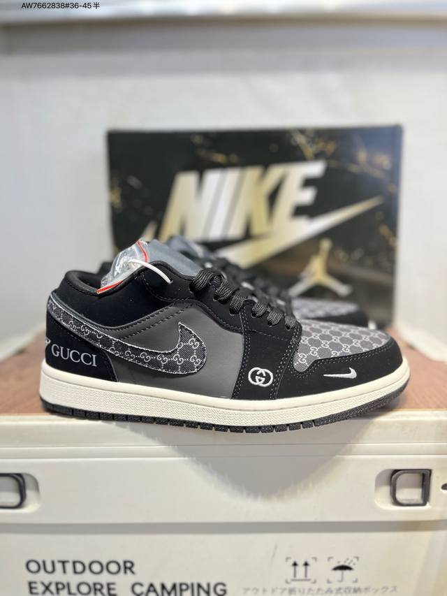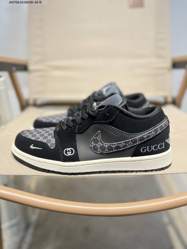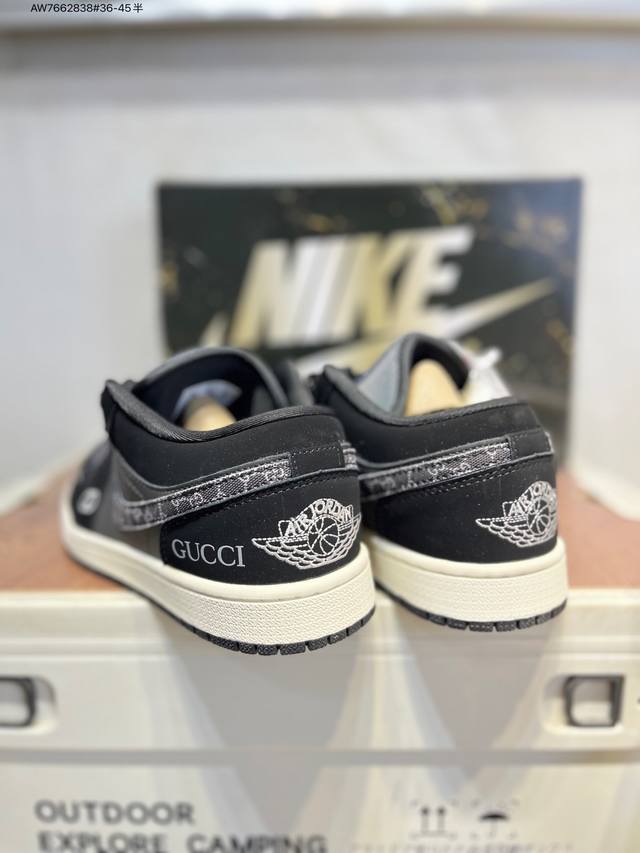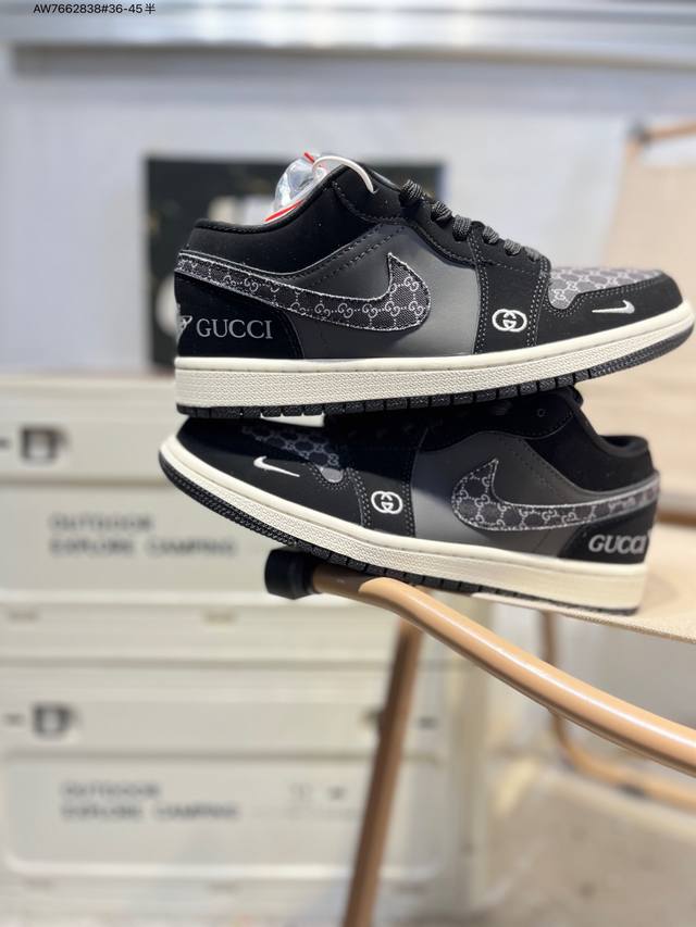 Factory Grade Top Layer Leather Gucci X Jordan Air Jordan 1 Low AJ1 Low-Top Basketball Shoes Official Synchronized Colorway Original Product