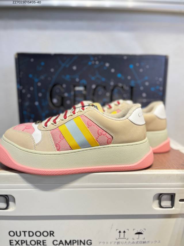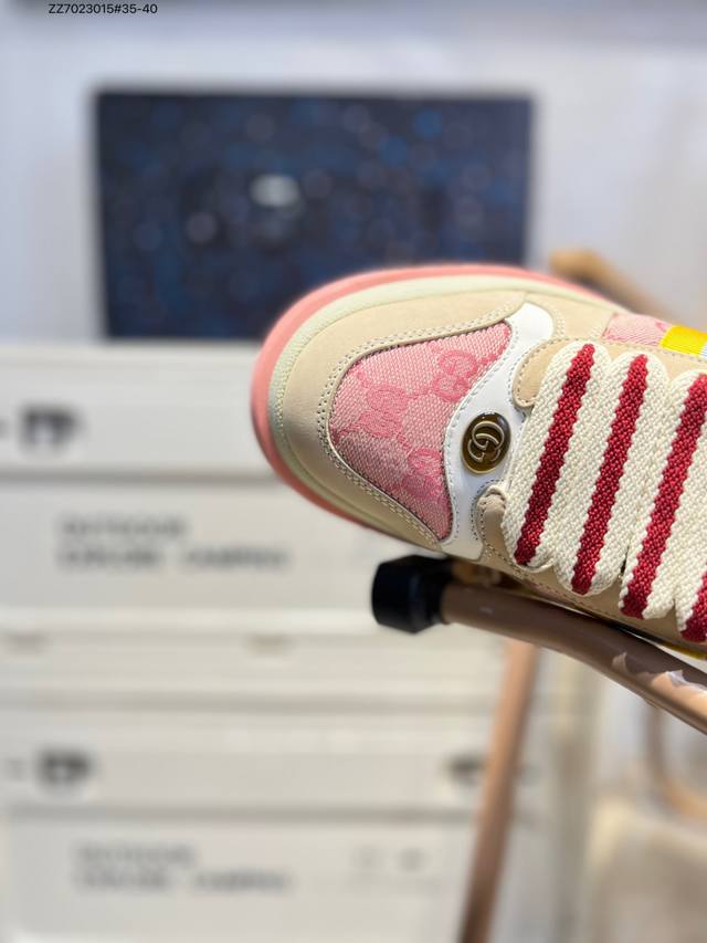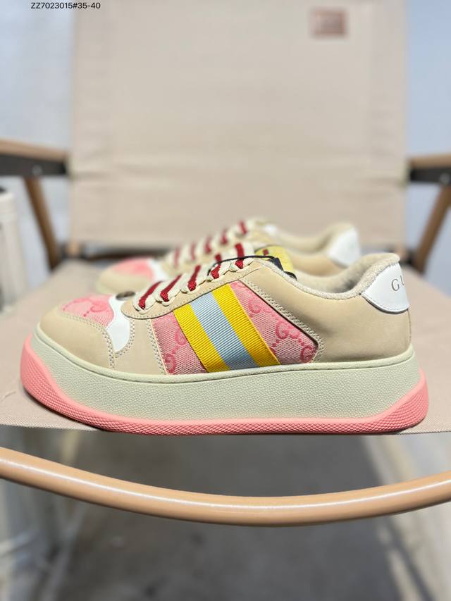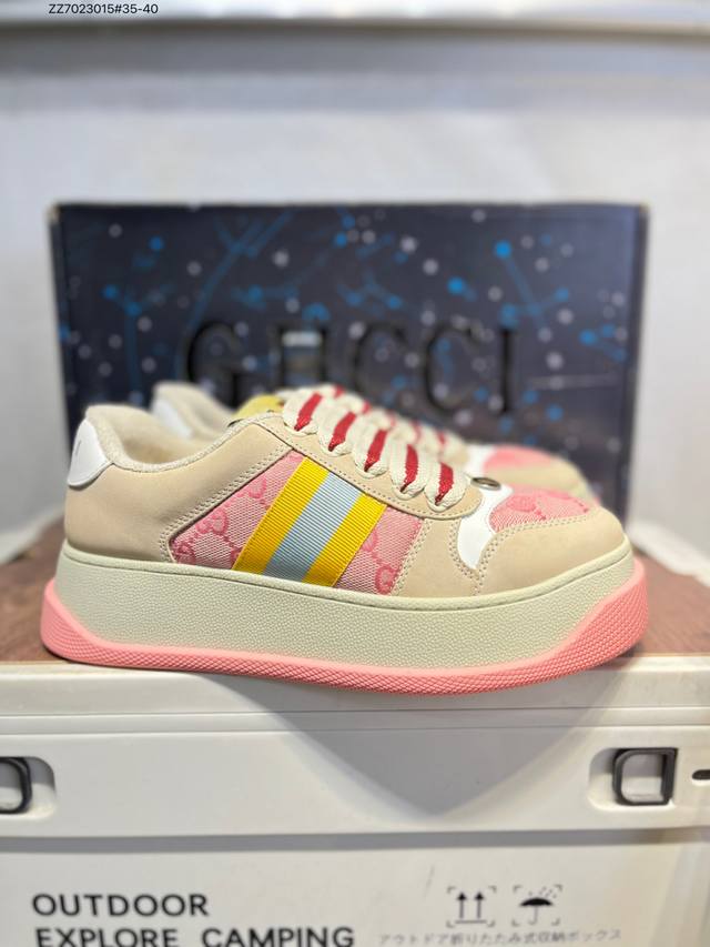 Guangdong Original Factory# Gucci Distressed Screener Sneaker Classic Gucci Dirty Sneakers Original Retro Versatile Dad Sneakers Retro Preppy Style 577786 Zz7023015#35-40 DDD