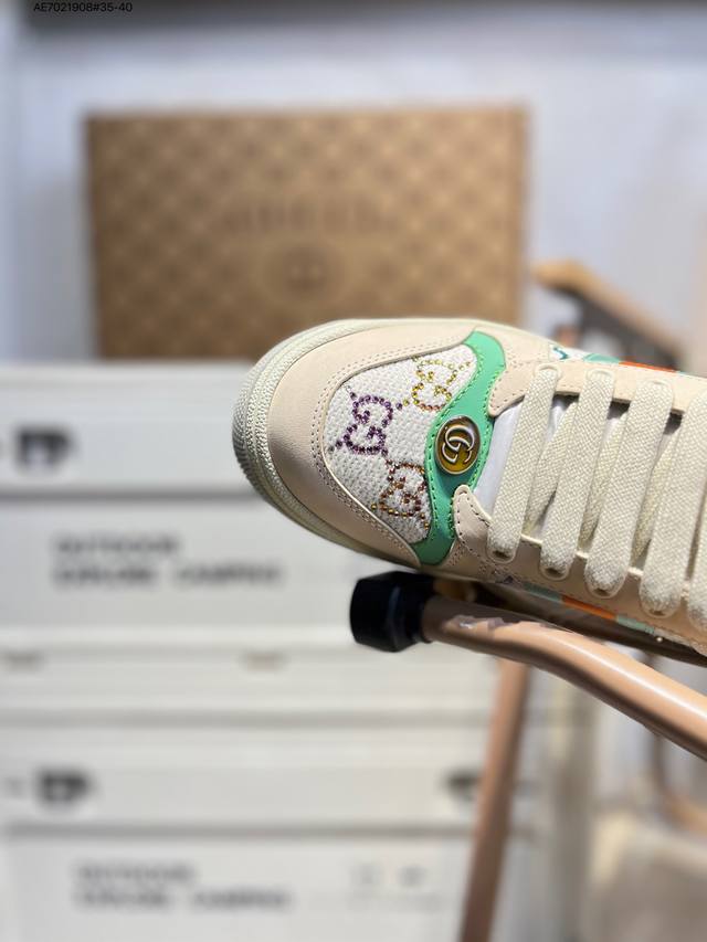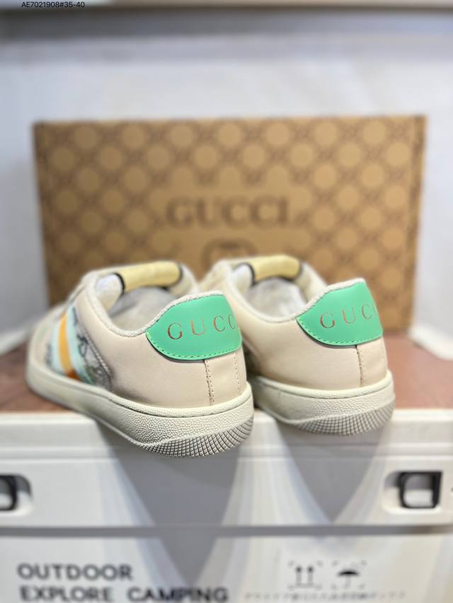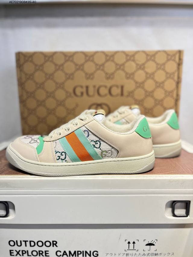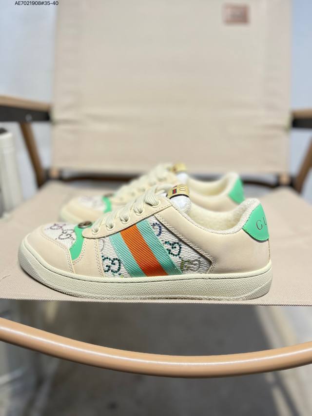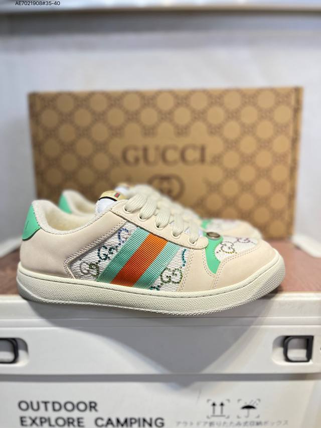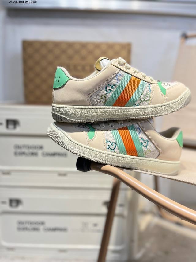 Guangdong Original Factory# Gucci Distressed Screener Sneaker, classic Gucci distressed sneakers, retro versatile dad sneakers, retro preppy style, Ae7021908#35-40 DDD