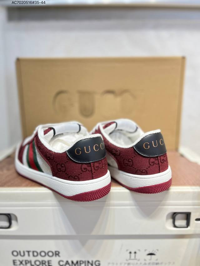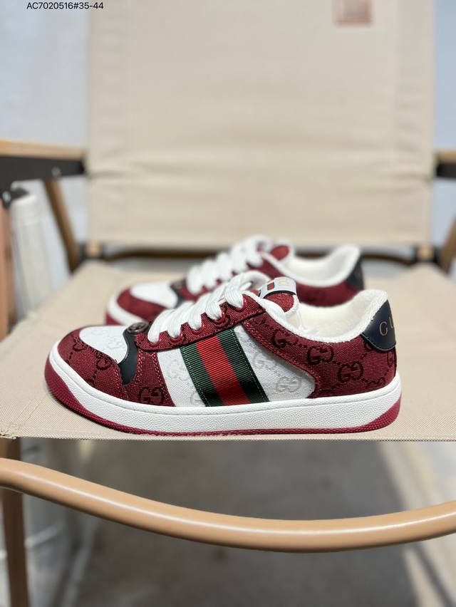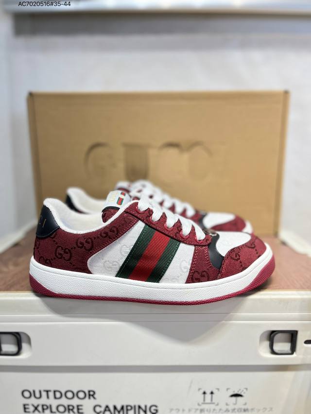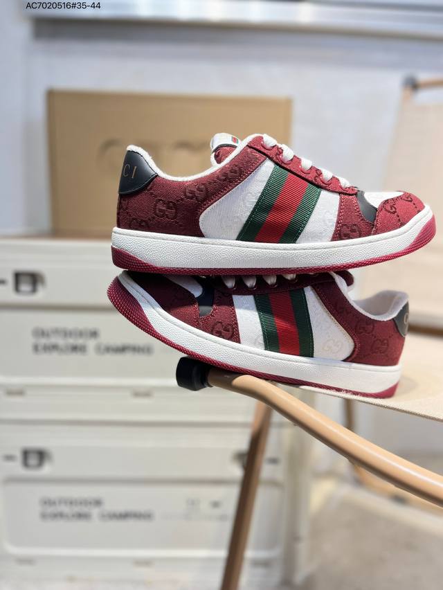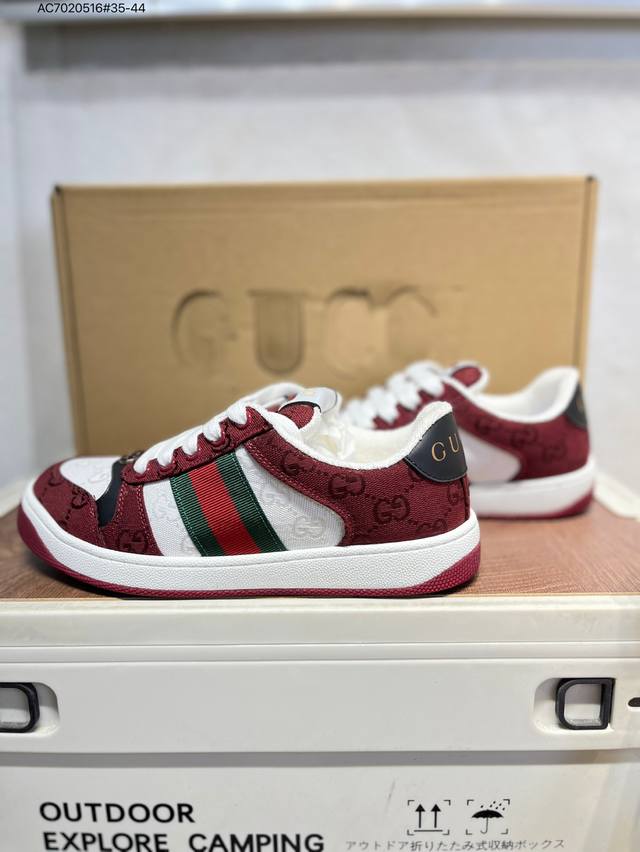 Guangdong original quality#Upgraded full set of counter accessories and packaging, comes with official reinforced packaging box#Decorated with metal double G oval enamel details#Correct fleece lining and top-layer leather-infused PU latex footpads#External distressed effect double-layer TPU anti-deformation rubber outsole Italian fashion luxury brand Gucci Gucci Screener Gg Sneaker Low classic prototype series retro versatile dad distressed casual board 577684 Ac7020516#35-44