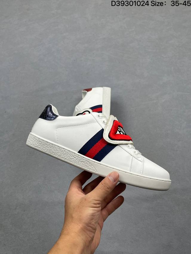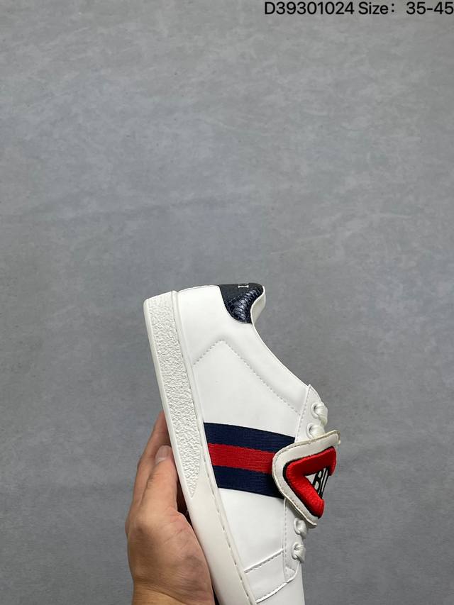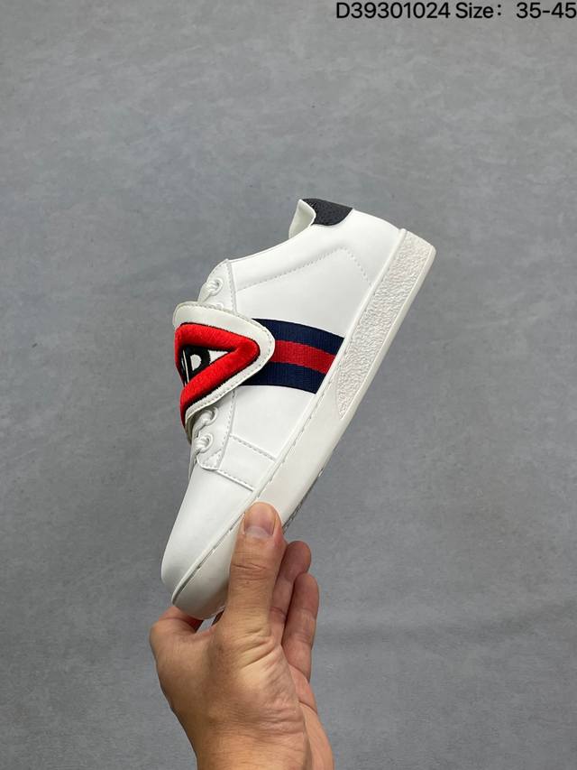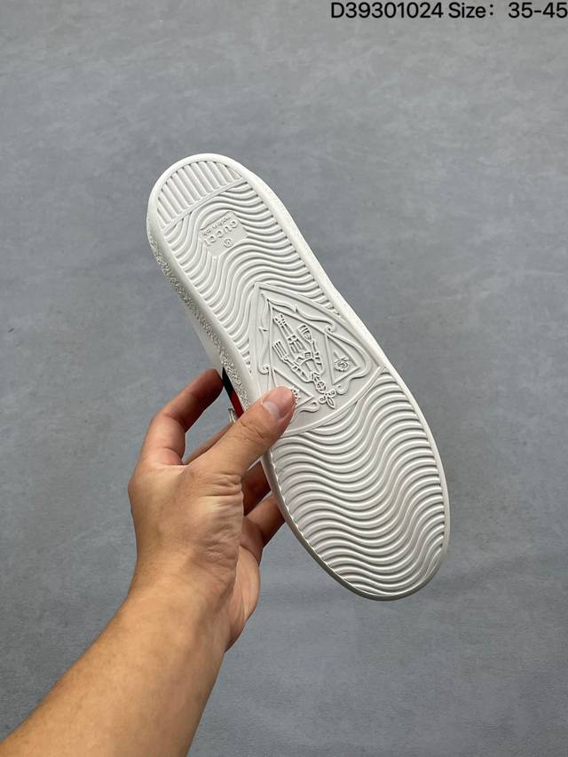 The brand's classic webbing element is inspired by Gucci's equestrian heritage. Each season, it is reinterpreted through various novel and unique designs and styles. It is presented in red and blue details on this leather sneaker, combining three classic elements: chunky sneakers, white sneakers, and distressed sneakers, embodying the brand's design philosophy of blending sport and leisure. The platform design gives the sneakers a retro feel, and most importantly, the shoes are very lightweight