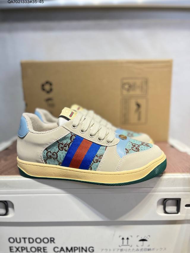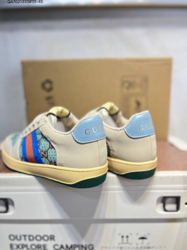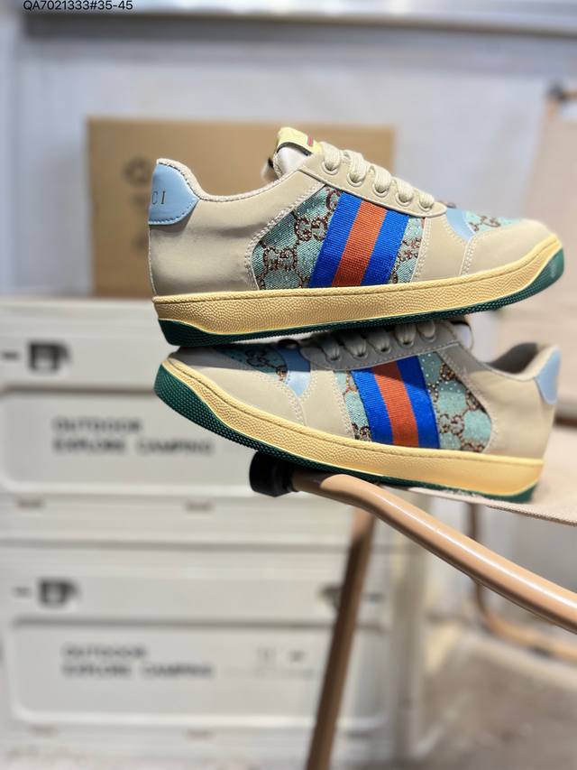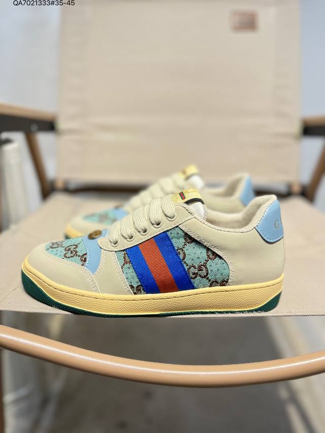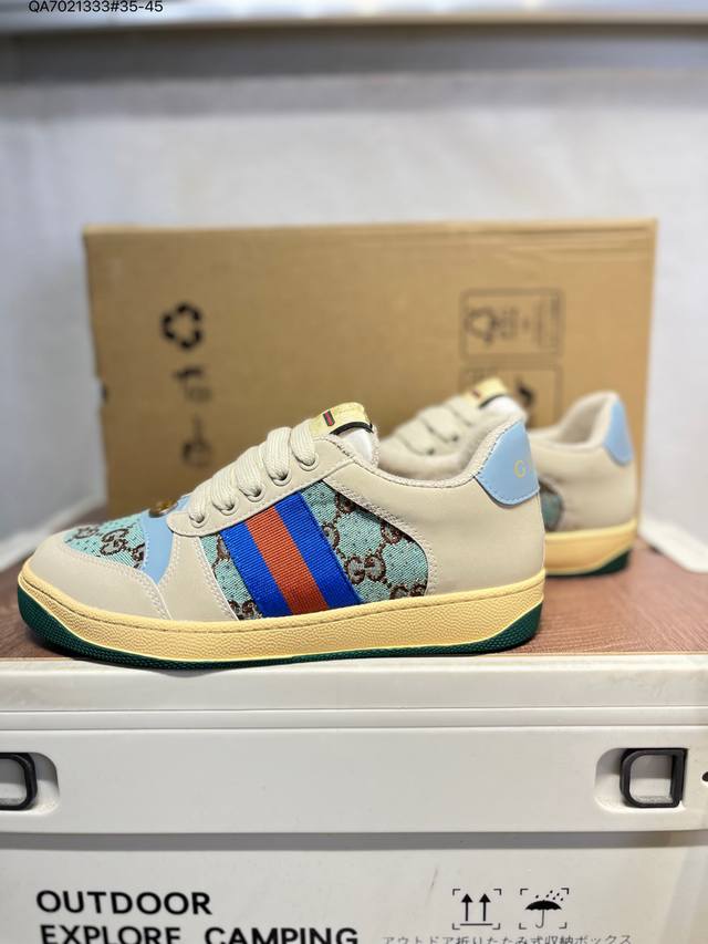 Gucci Distressed Screener Sneaker, classic Gucci distressed sneakers, retro versatile dad sneakers, retro preppy style 546163 Qa7021333#35-45 DDD