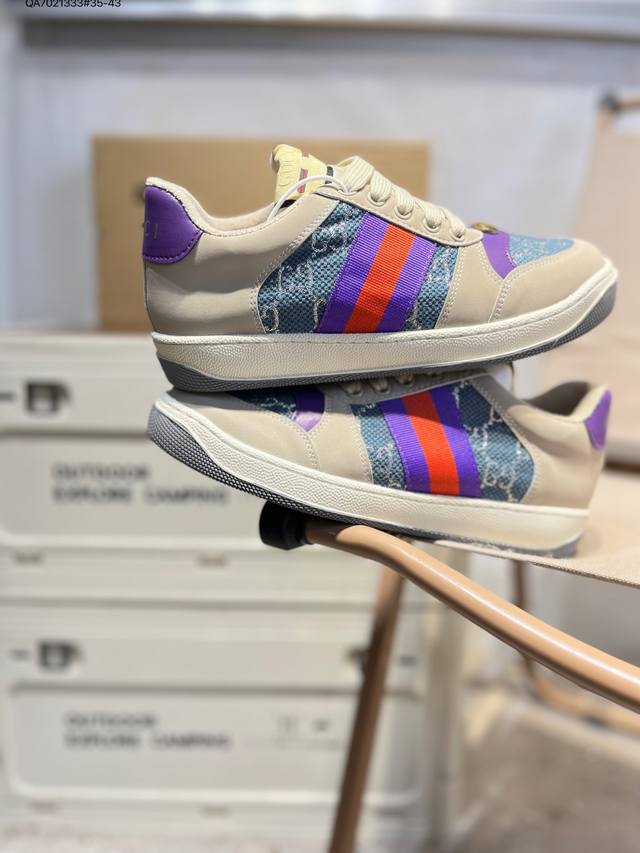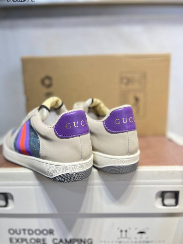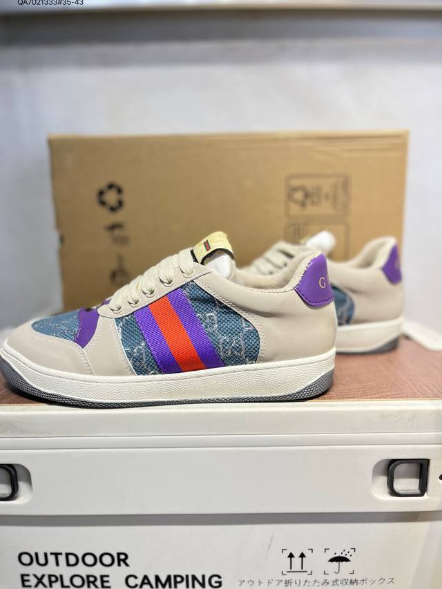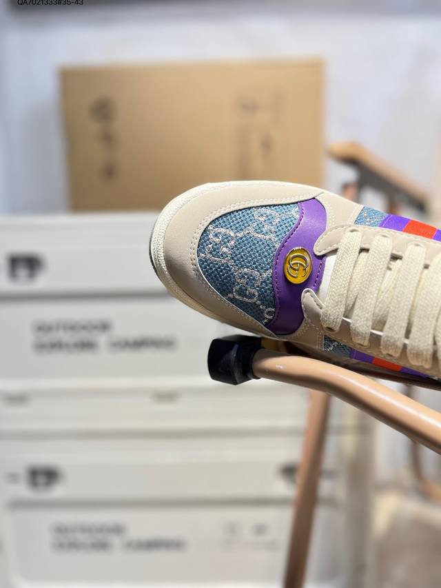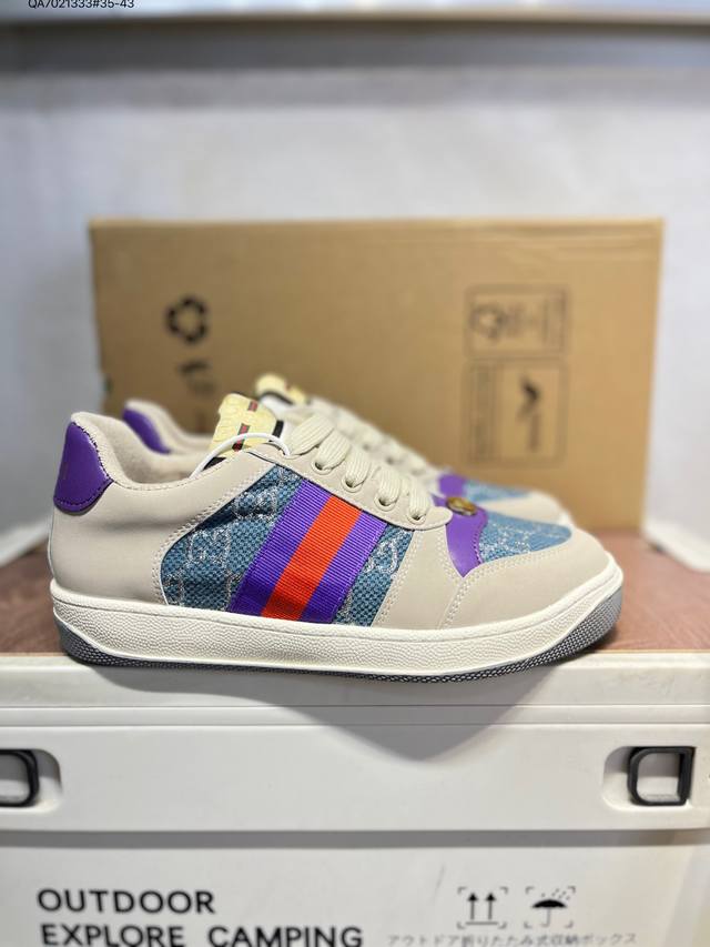 Gucci Distressed Screener Sneaker, classic Gucci distressed sneakers, retro versatile dad sneakers, retro preppy style 546163 Qa7021333#35-43 DDD