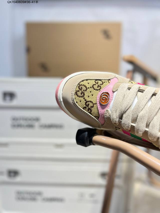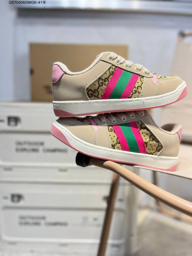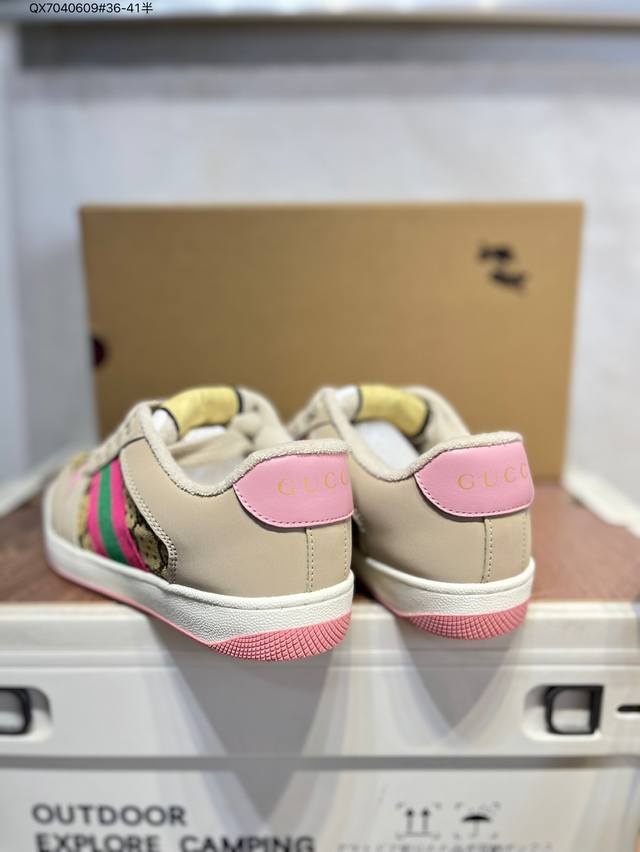 Gucci Distressed Screener Sneaker Gucci classic dirty shoes prototype retro versatile dad sneakers retro college style 677423 Qx7040609#36-41 half