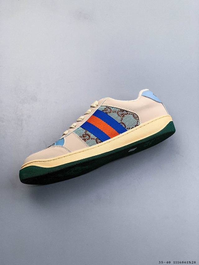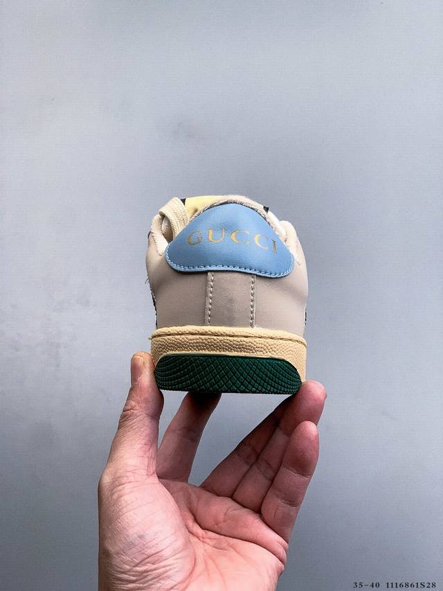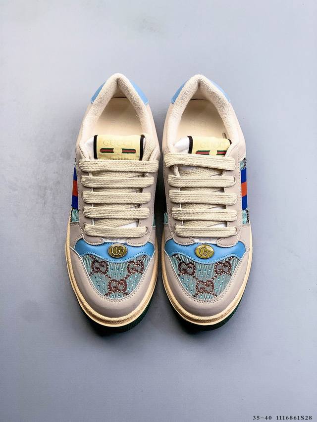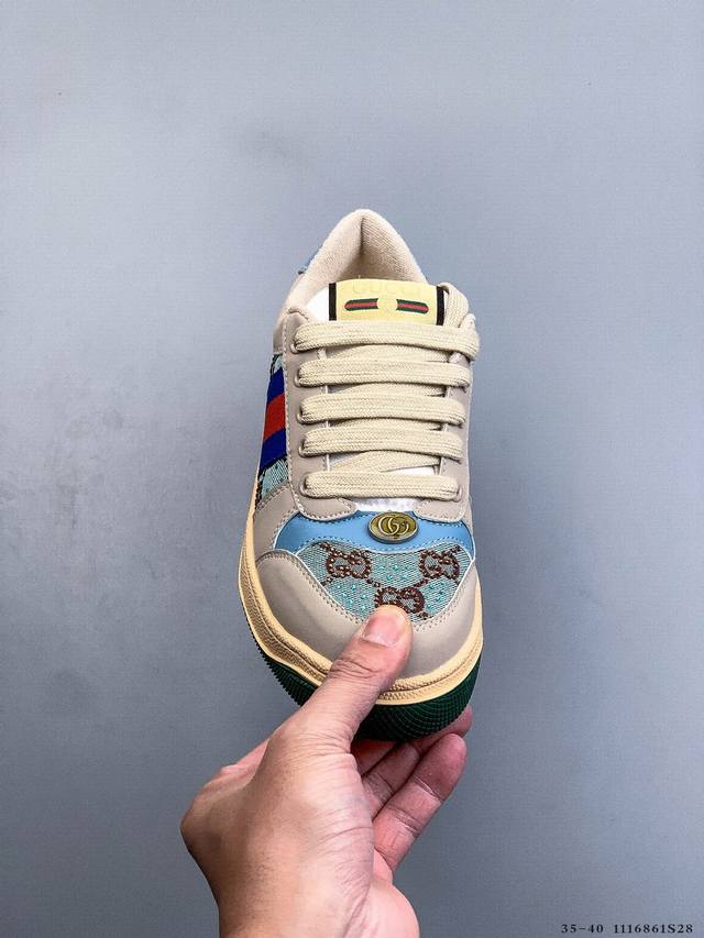 Gucci Distressed Screener Sneaker Official Synchronized Classic Original Retro Versatile Distressed Sneakers Retro Preppy Style Nostalgic Version DDD 1116861S28 DDD
