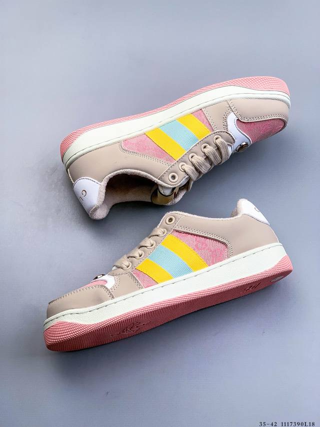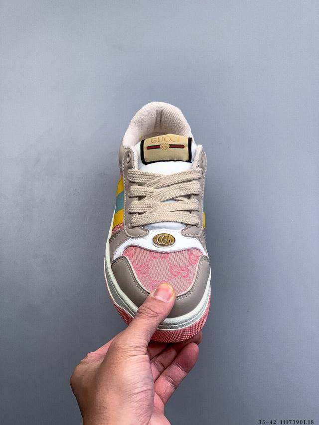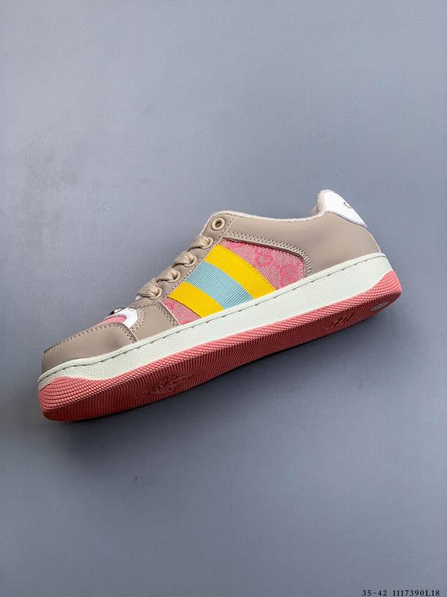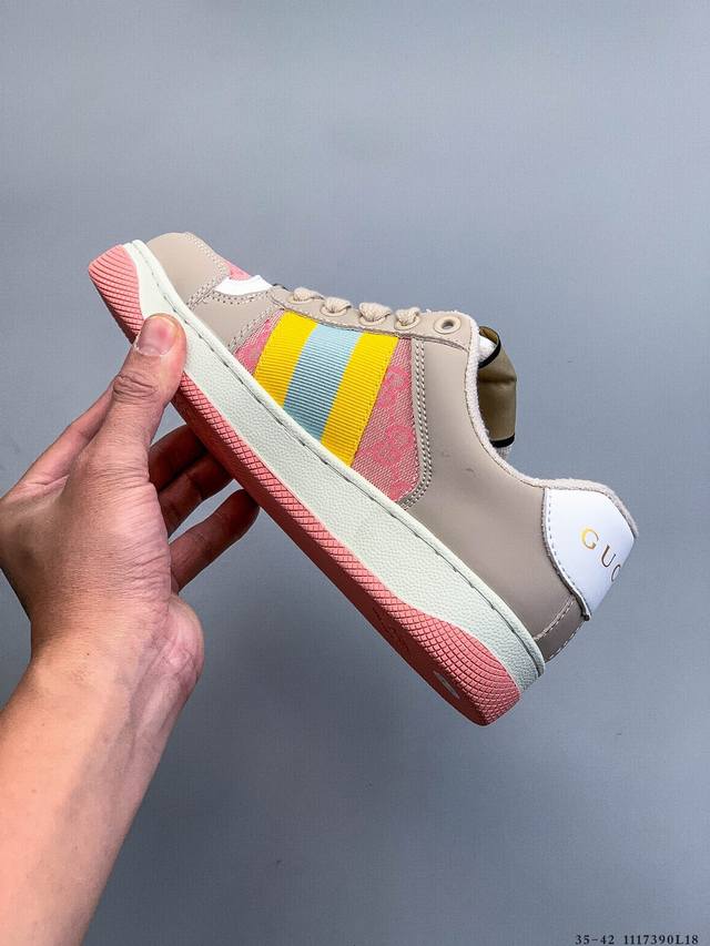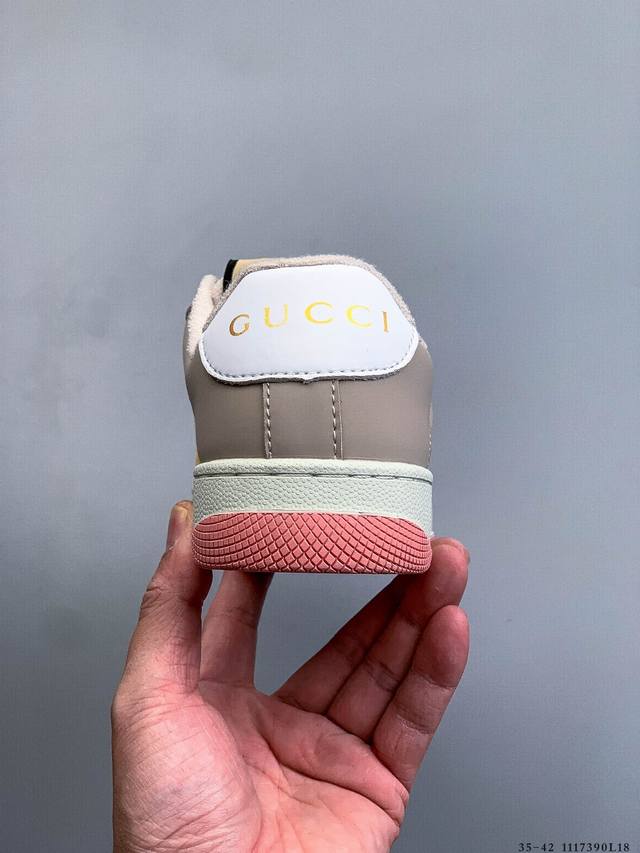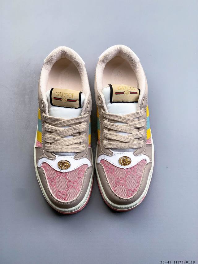 Gucci Distressed Screener Sneaker Official Synchronized Classic Original Retro Versatile Distressed Sneakers Retro Preppy Style Nostalgic Version DDD 1117390L18 DDD