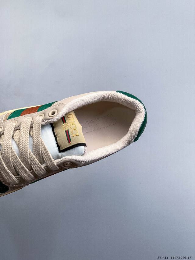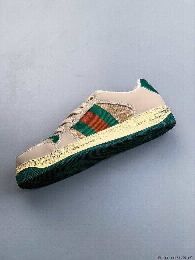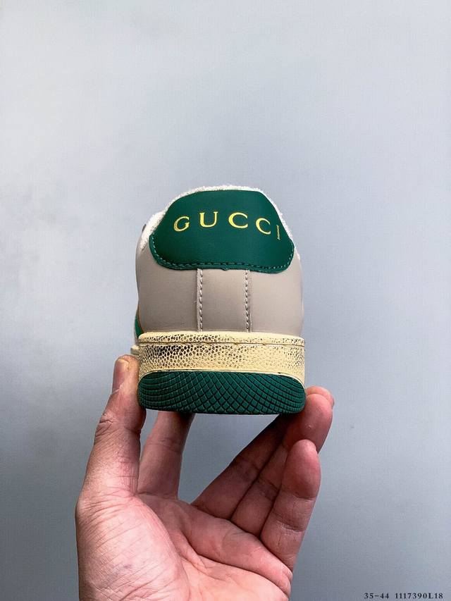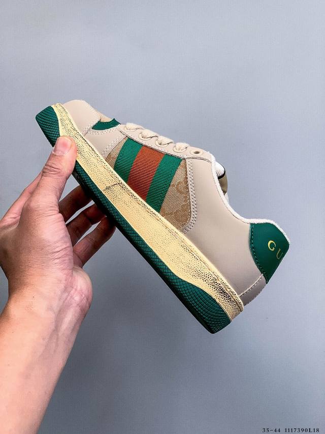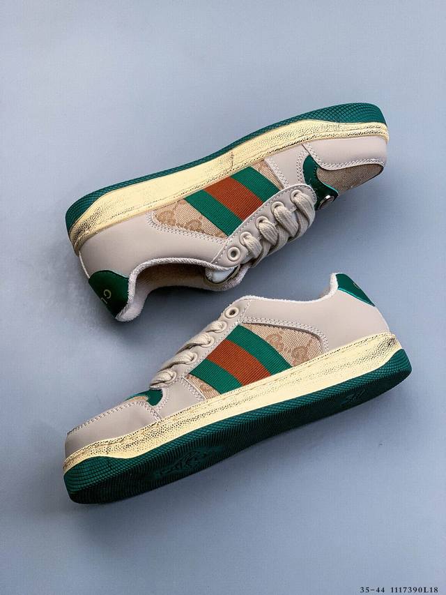 Gucci Distressed Screener Sneaker Official Synchronized Classic Original Retro Versatile Distressed Sneakers Retro Preppy Style Nostalgic Version DDD 1117390L18 DDD