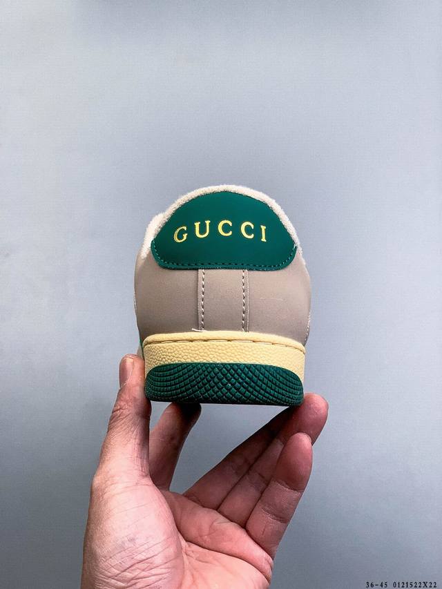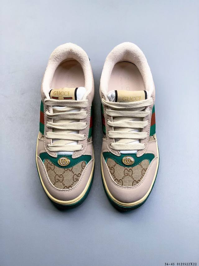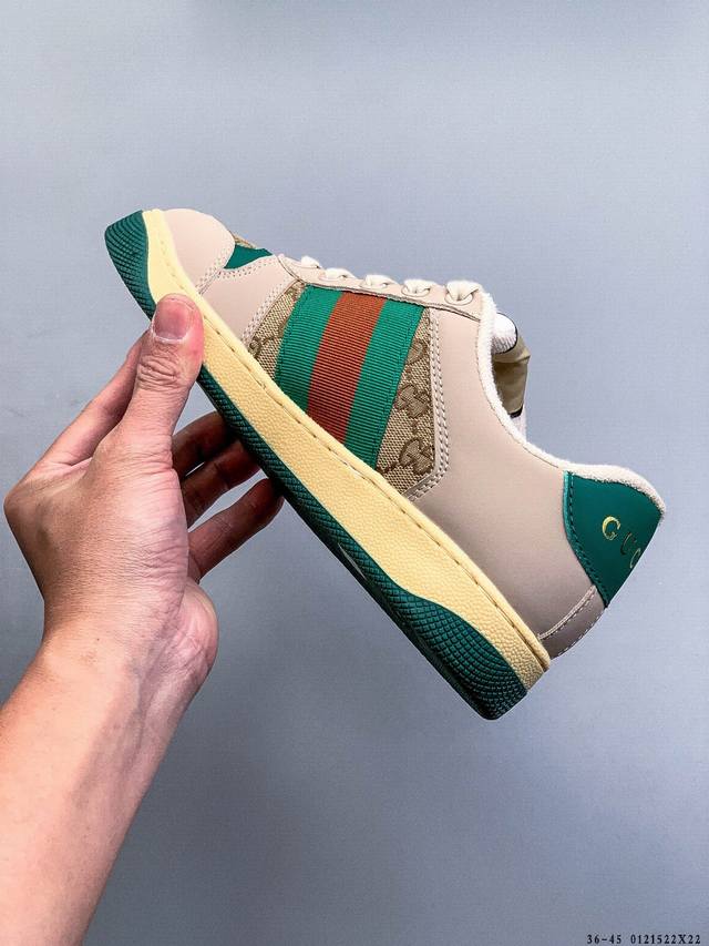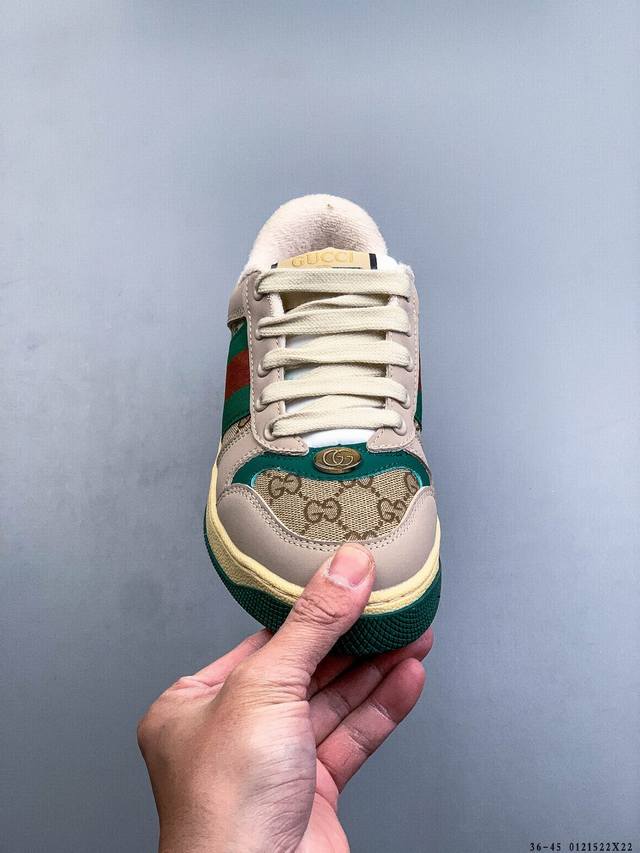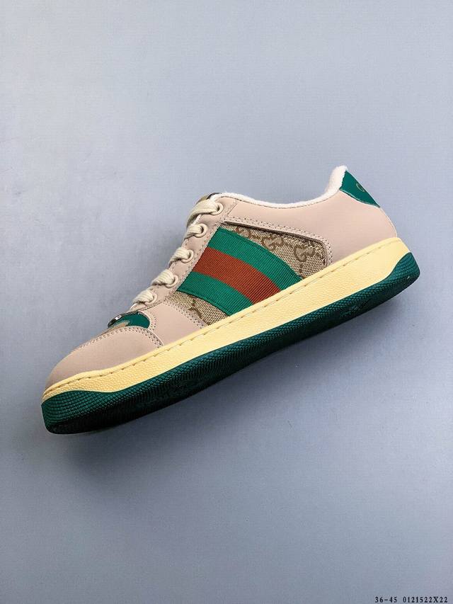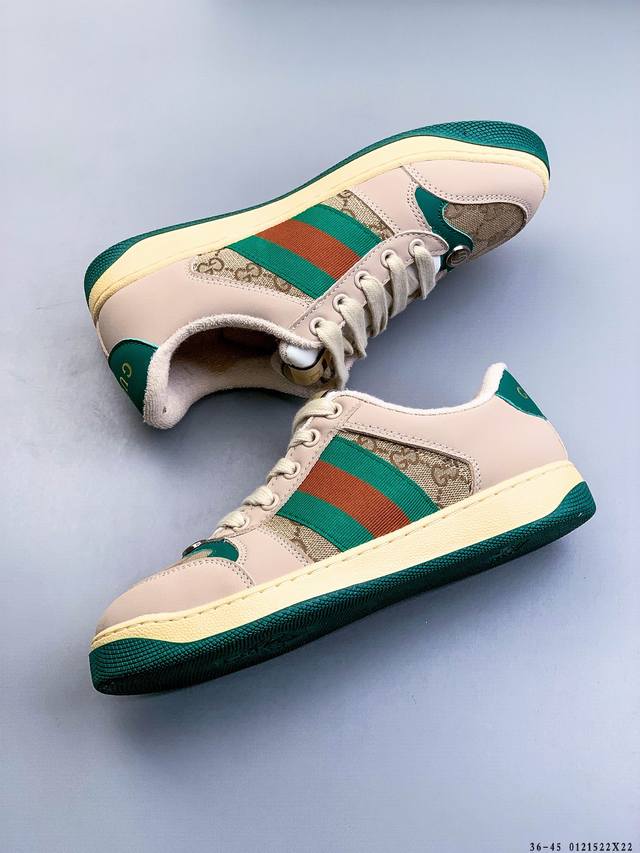 Gucci Distressed Screener Sneaker Official Synchronized Classic Original Retro Versatile Distressed Sneakers Retro Preppy Style Nostalgic Version DDD 0121522X22 DDD