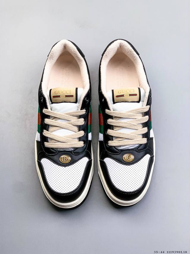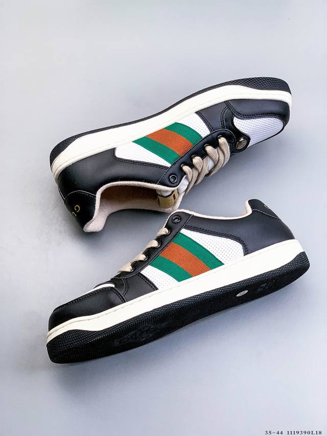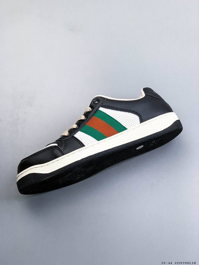 Gucci Distressed Screener Sneaker Official Synchronized Classic Original Retro Versatile Distressed Sneakers Retro Preppy Style Nostalgic Version DDD 1119390L18 DDD