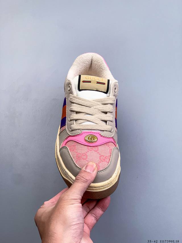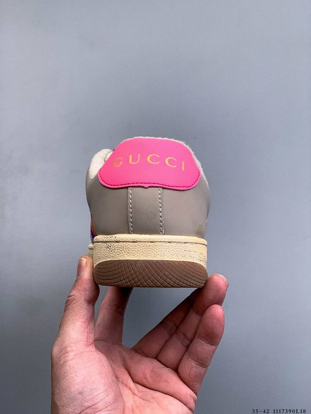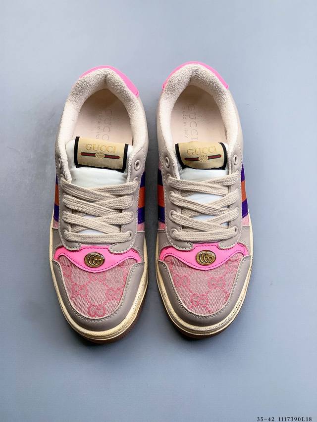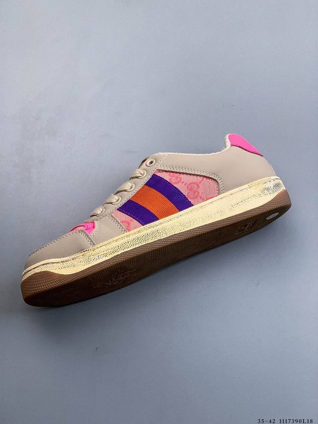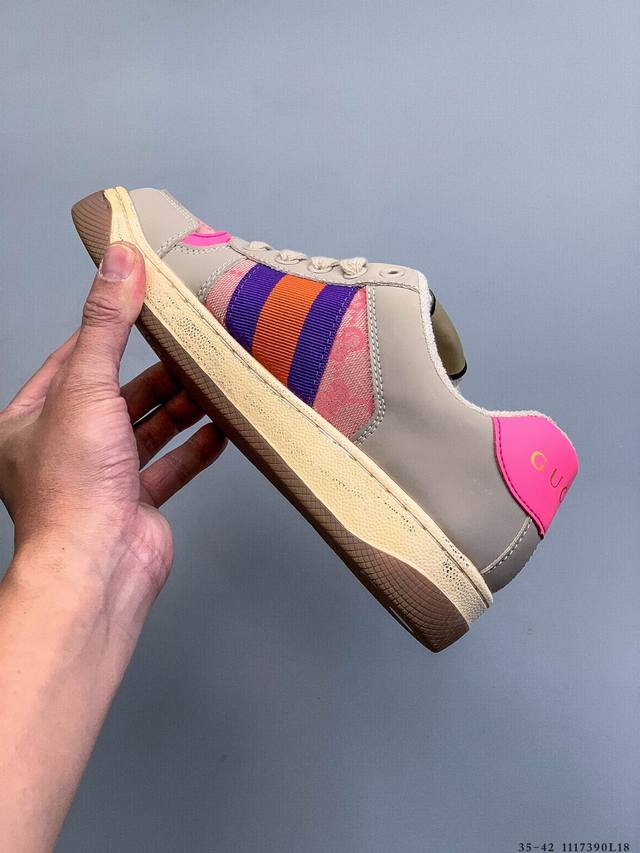 Gucci Distressed Screener Sneaker Official Synchronized Classic Original Retro Versatile Distressed Sneakers Retro Preppy Style Nostalgic Version DDD 1117390L18 DDD