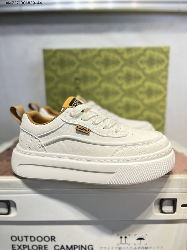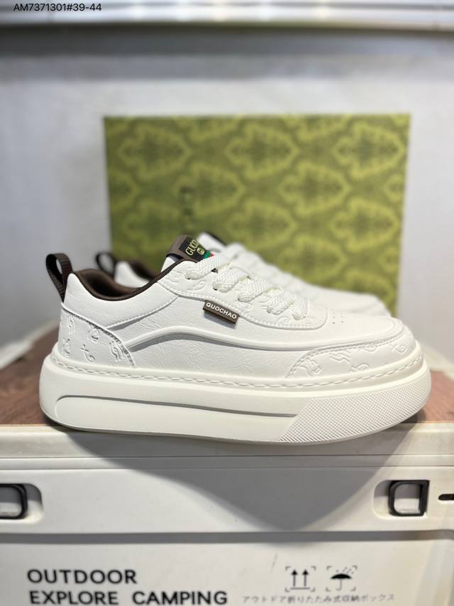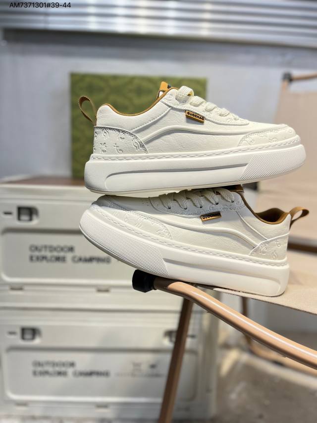 Gucci leather round toe lace-up platform low-top sneakers, stylish color-blocked design, soft and comfortable upper made of cowhide, easy on the feet. Am7371301#39-44 DDD