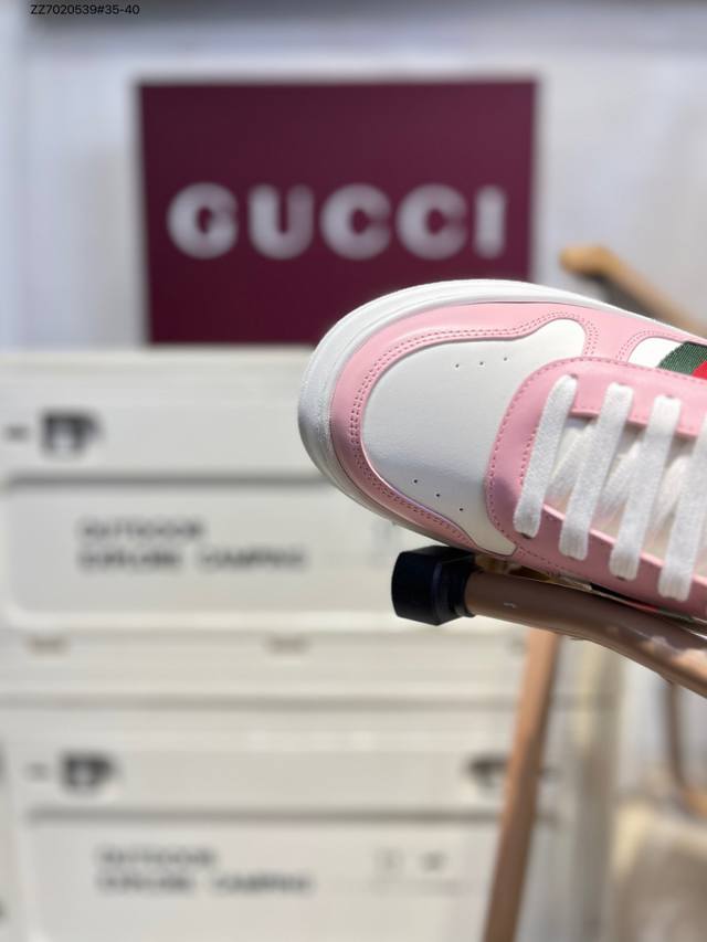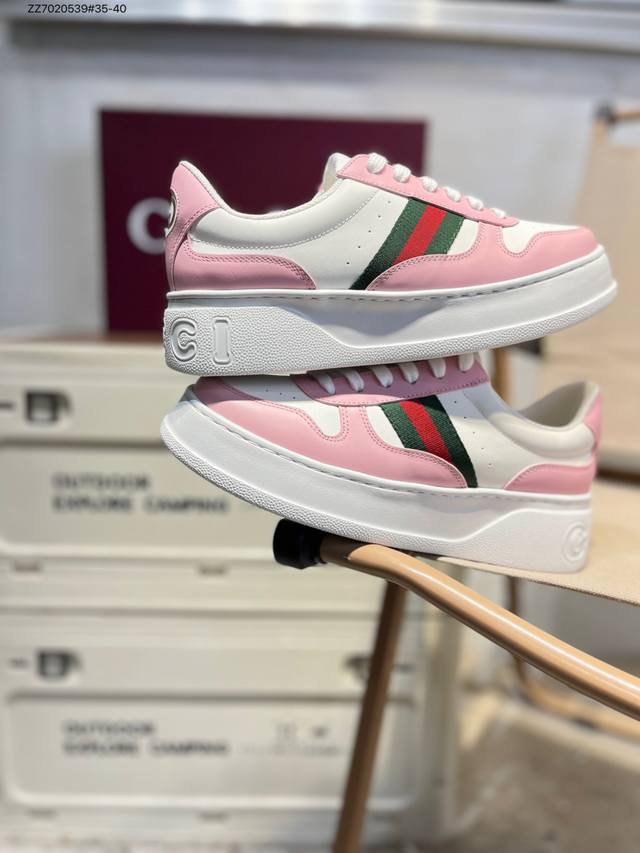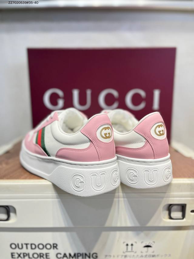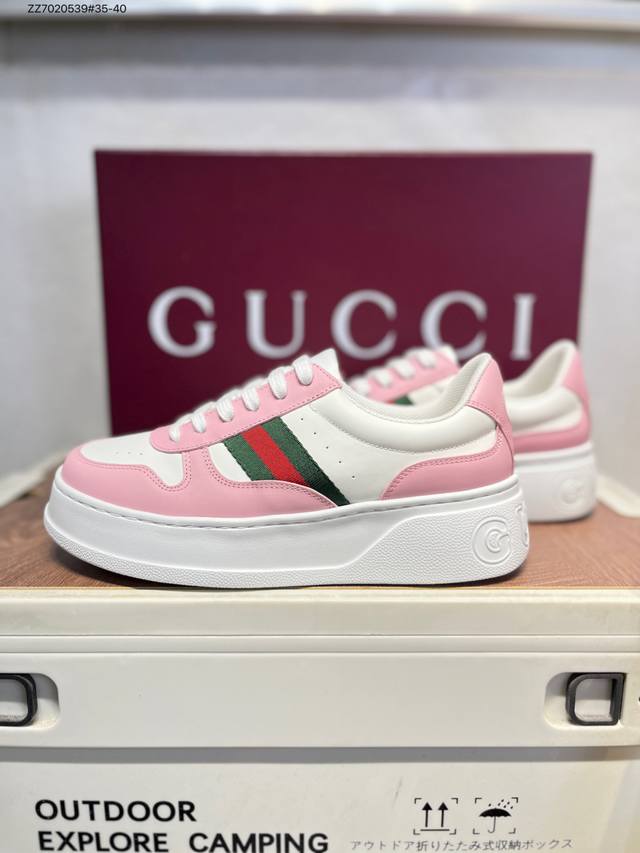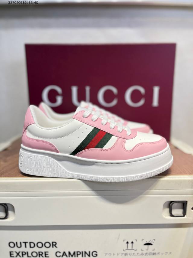 Gucci Leather-embellished Round Toe Lace-up Platform Low-top Sneakers for Men and Women DDD Fashionable color-blocked design with soft, perceptible cowhide leather for comfortable wear and easy control. The contrasting webbing on the side adds a visual focal point. DDD Anti-friction soft padding at the shoe opening with a small mesh for a soft, elastic feel against the foot and gentle contact with the ankle, protecting every wear. DDD 3D mapping of the golden shoe last: 3D scanning and mapping to explore a shoe last that better fits Asian foot shapes. The big data system makes minute corrections for greater comfort. DDD This sneaker features a platform construction, cleverly utilizing silhouette design, color scheme, and materials to showcase a retro style. The shoe uses metallic leather with leather piping and webbing details, complemented by a rubber sole for added sophistication. 602129 Zz7020539#35-40 DDD