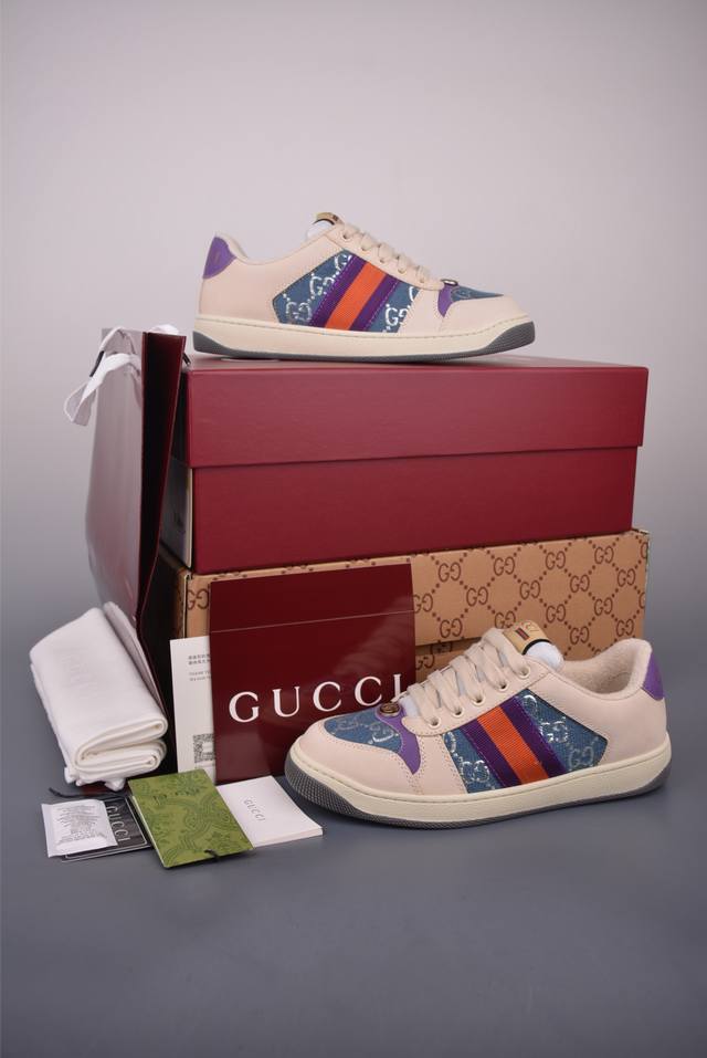 Gucci Screener Sporty Casual Luxury Series Gg Enamel Buckle Distressed Dirty Shoes Pure Original Level