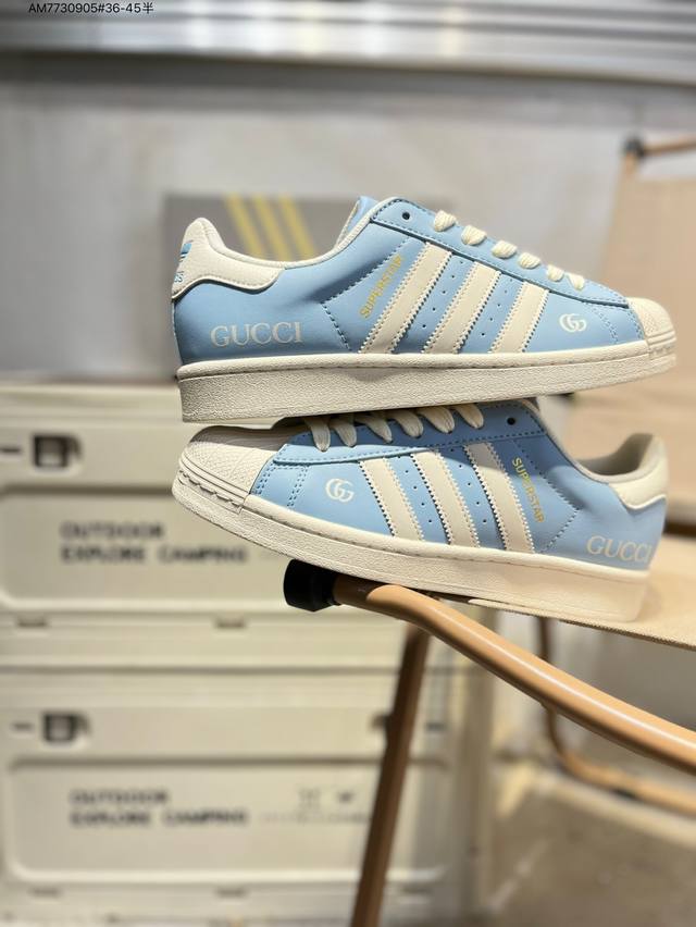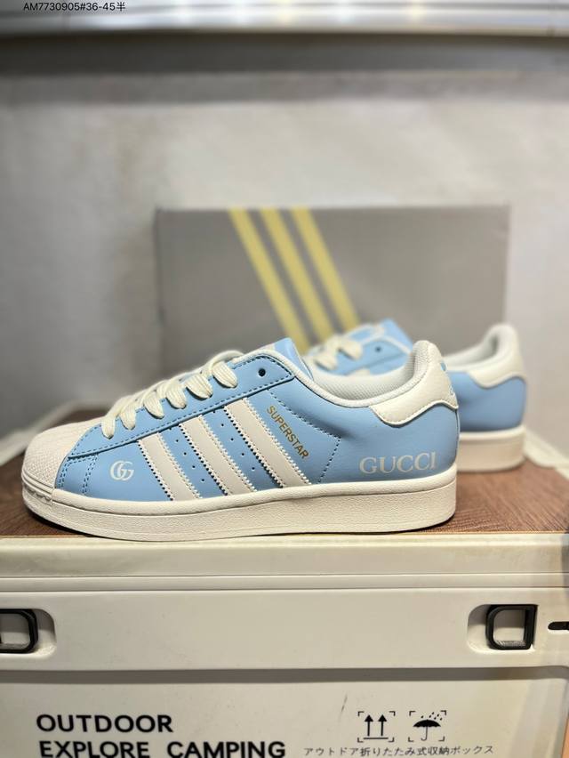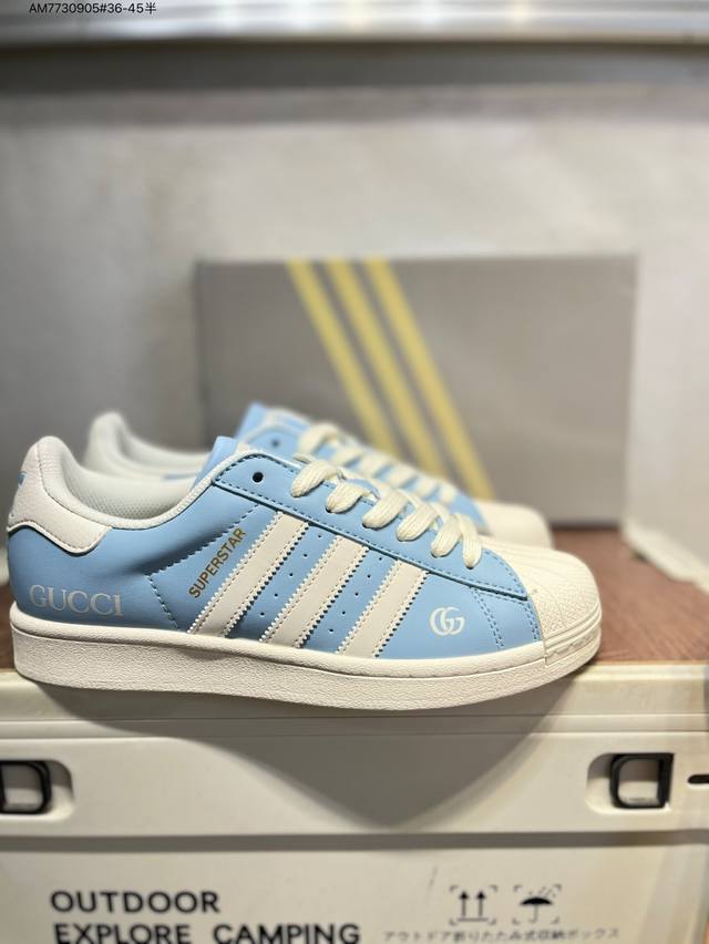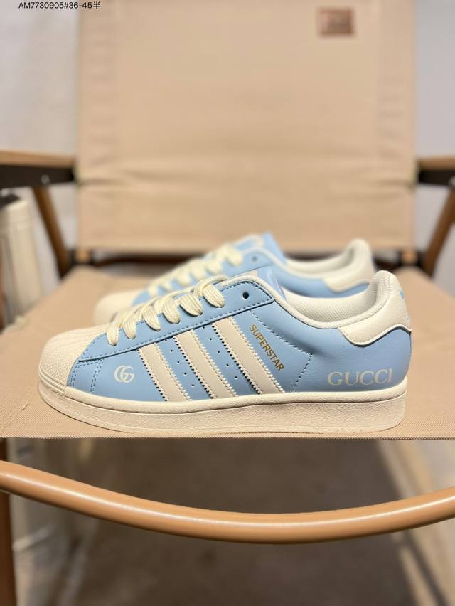 Gucci x Adidas Originals Superstar classic colorway, classic shell toe, official website synchronized real shot, first release channel authentic order, showcasing the highest level of craftsmanship in the market, different from ordinary genuine label versions on the market, no problem to wear in stores. Sd6813 Am7730905# 36-45 half size