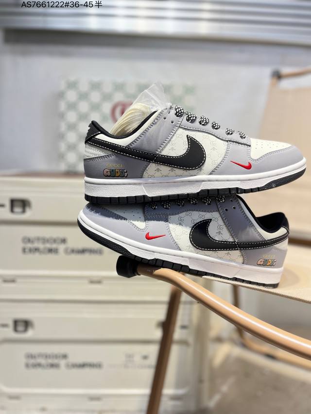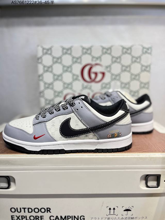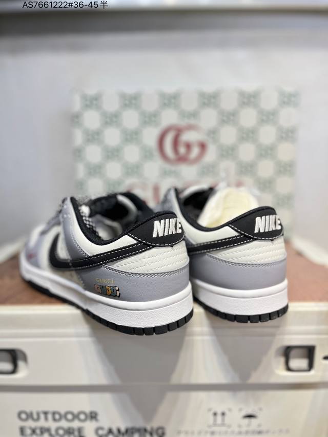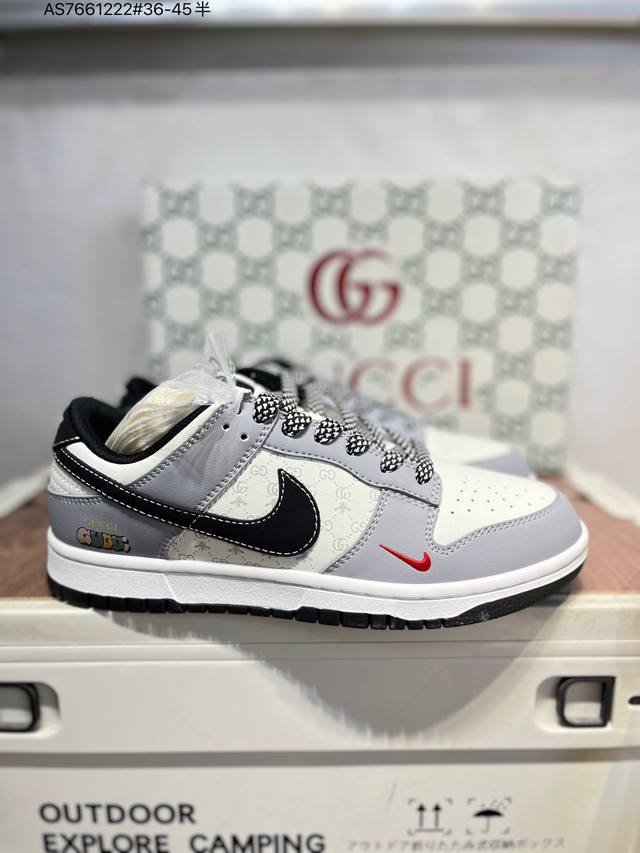 Gucci x Nike SB Dunk Low, highly recommended new colorway from a major manufacturer. Made with original top-grain materials and a unique design using steam distillation, resulting in a superior visual and tactile experience. High-quality factory-made, exceptionally clean. Features include electro-embroidery, clean leather cutting with no rough edges, and perfect details. (Cs1688 As7661222# 36-45.5)