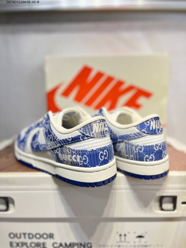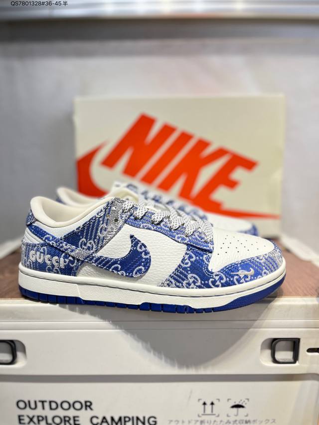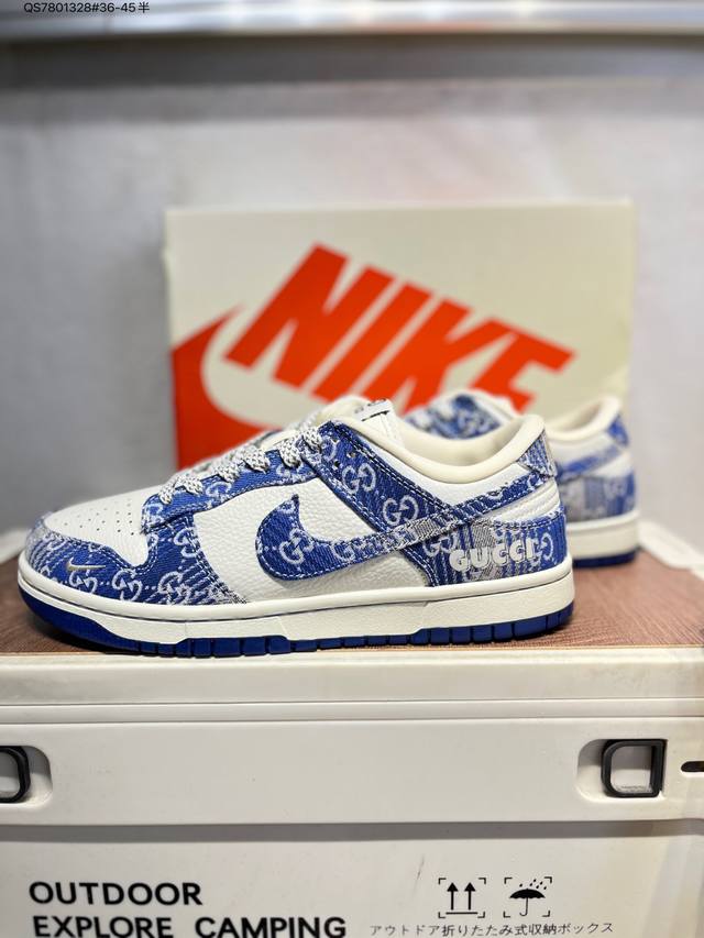 Gucci X Nike SB Dunk Low, Highly Recommended New Colorway, Made by a Major Factory. Original Top-Grain Material, Exclusive Design, Steam Distillation Process. Provides a superior visual and tactile experience. High-Quality Factory Direct Supply with Excellent Cleanliness. Electrical Embroidery Process, Clean Leather Cutting with No Rough Edges, Perfect Details. Sc9207 Qs7801328 #36-45.5.