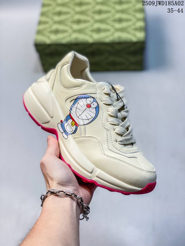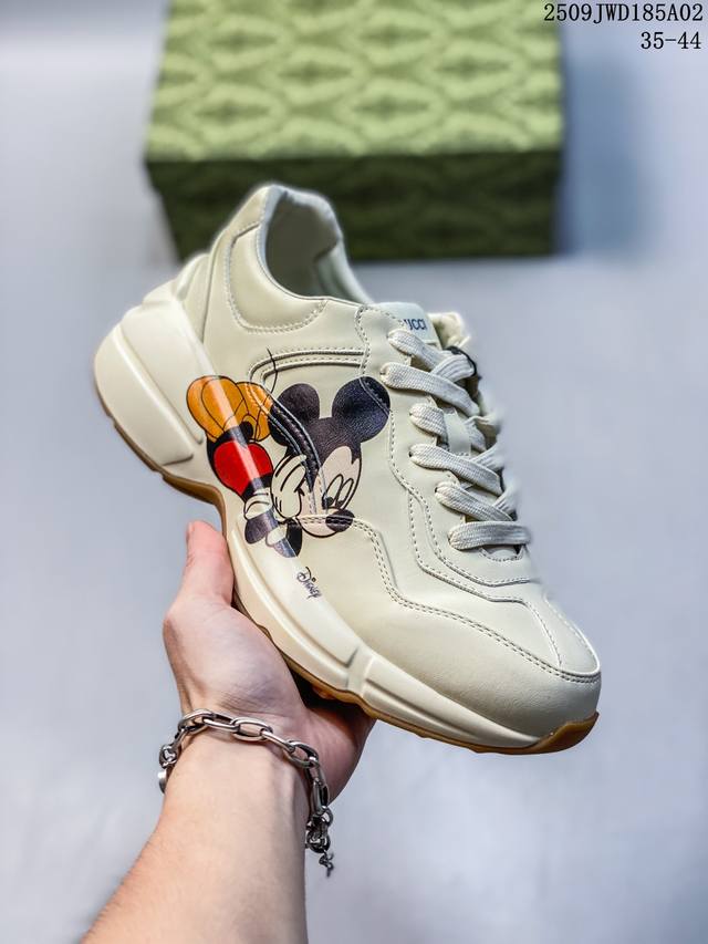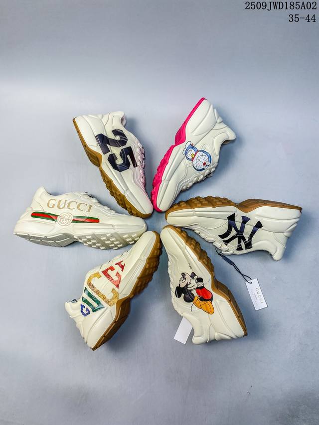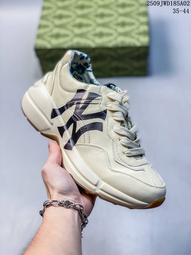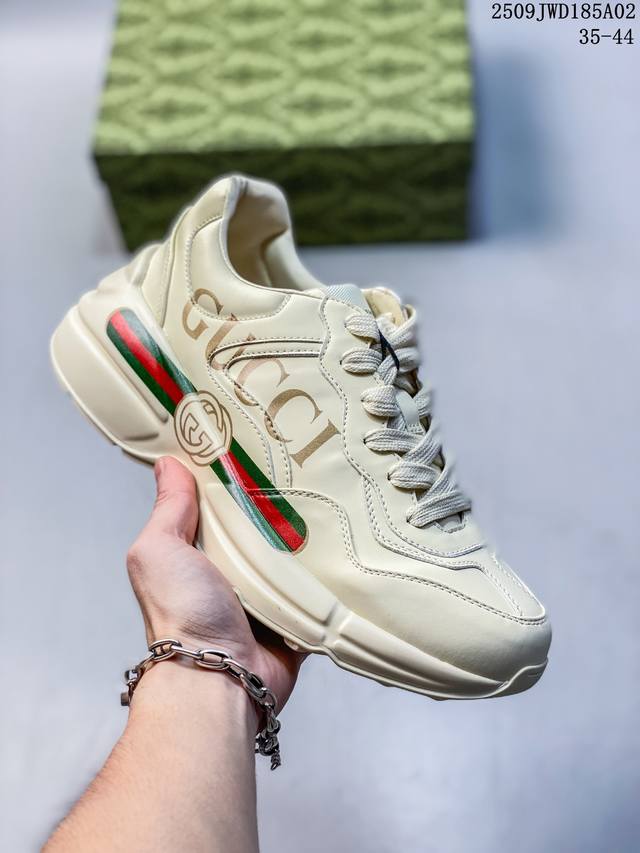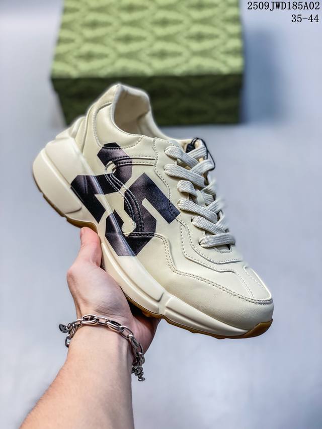 High-end brand Gucci Rhyton Vintage Trainer Sneaker leather horn-shaped retro jogging shoes 630607 Drw00 9522