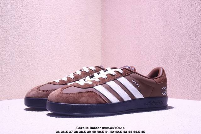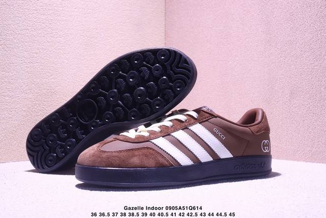 High-end customized Ad Gazelle Indoor Trainers Gucci collaboration --- brown, black and white original custom long-haired suede combination, environmentally friendly fiber leather upper material