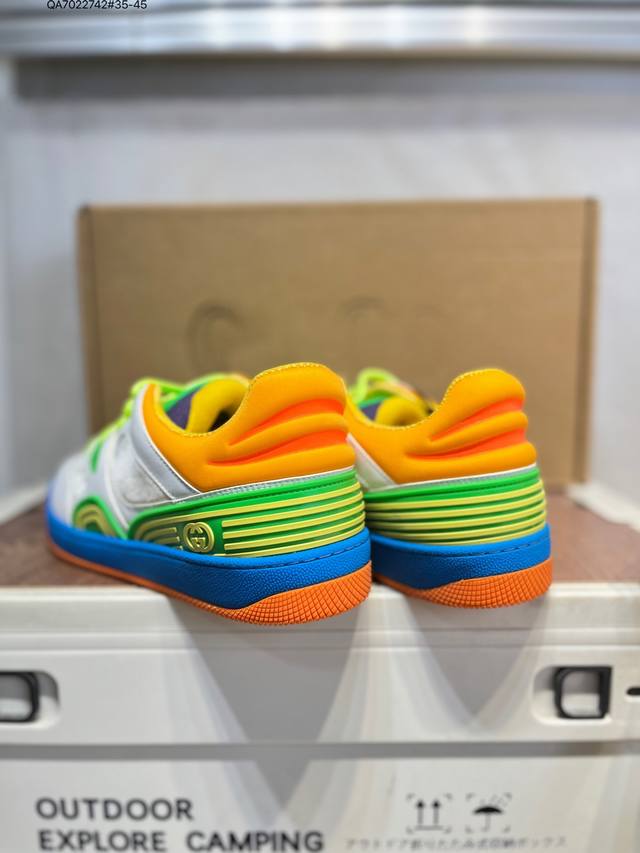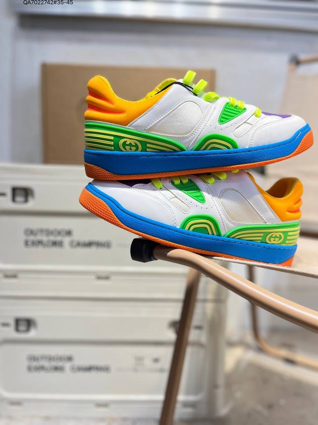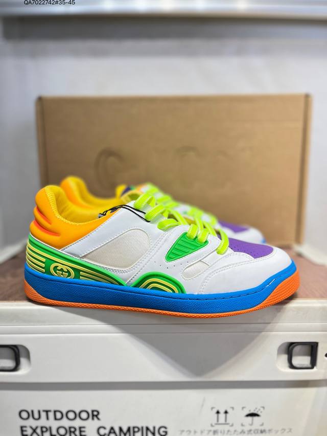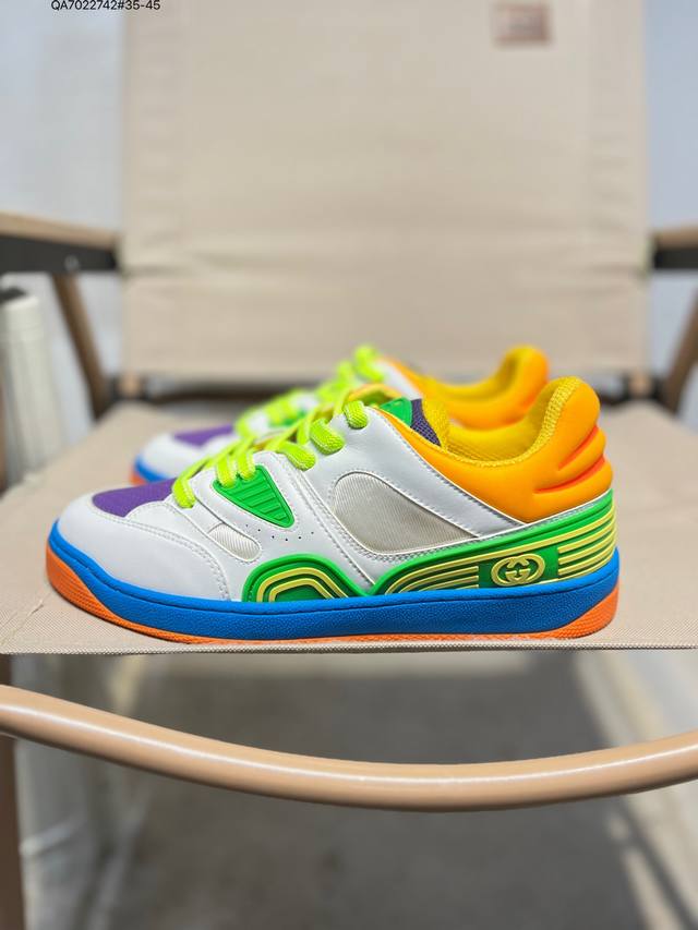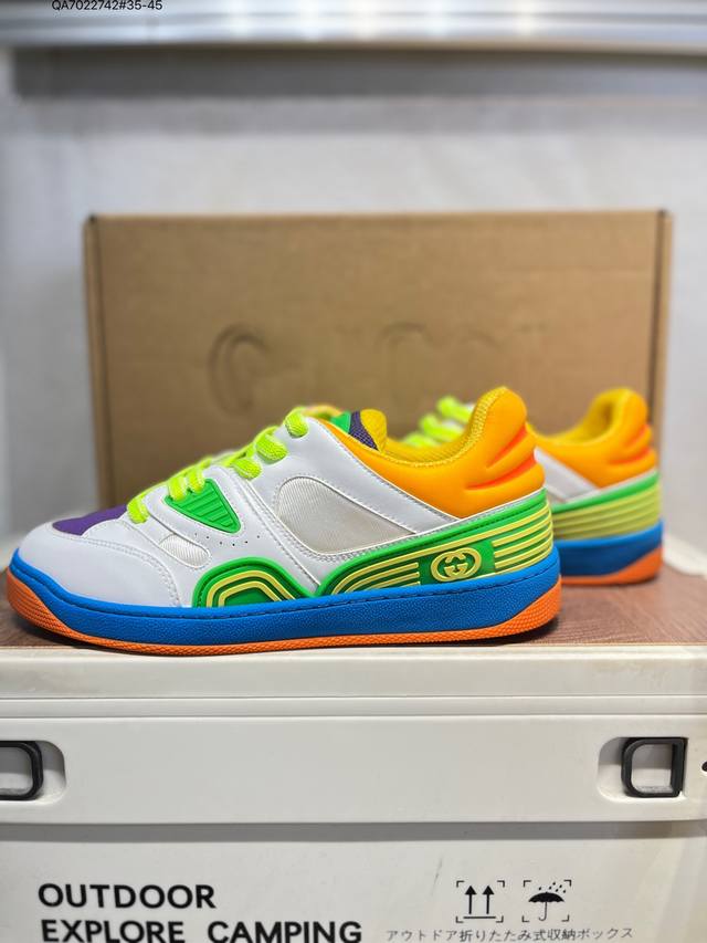 The Gucci Basket sneaker series is inspired by 90s basketball shoes. The entire style is very heavy-duty. The upper incorporates iconic Gucci elements. The mixed colors are so beautiful and show off your personality. It has a slightly distressed style. Gucci fans should not miss it