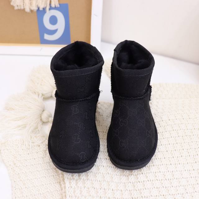 Ugg Gucci logo collaboration, washed style, durable and wear-resistant, sheepskin lining, same as boutique styles, lightweight outsole. Sizes 25-35 (for children).