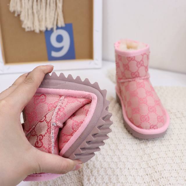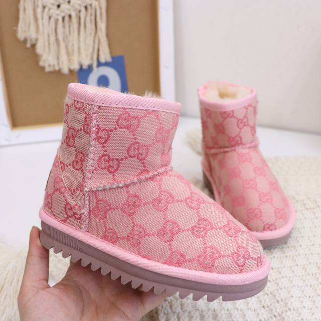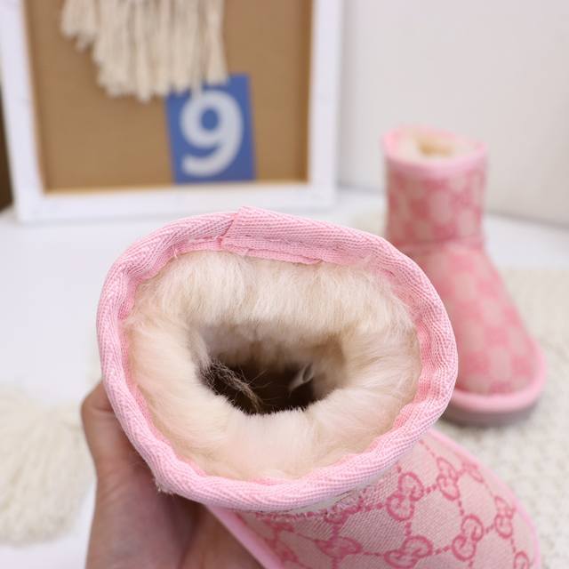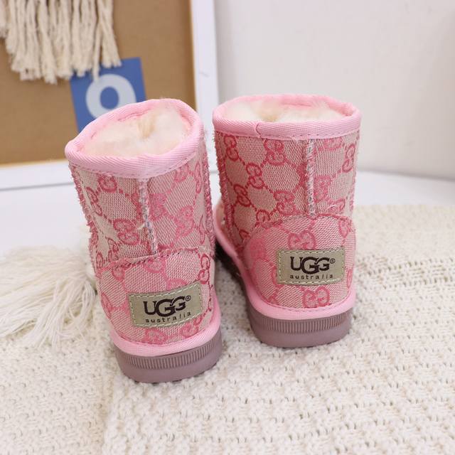 Ugg Gucci logo collaboration, washed style, durable and wear-resistant, sheepskin lining, same as boutique styles, lightweight outsole, size 25-35 (for children).
